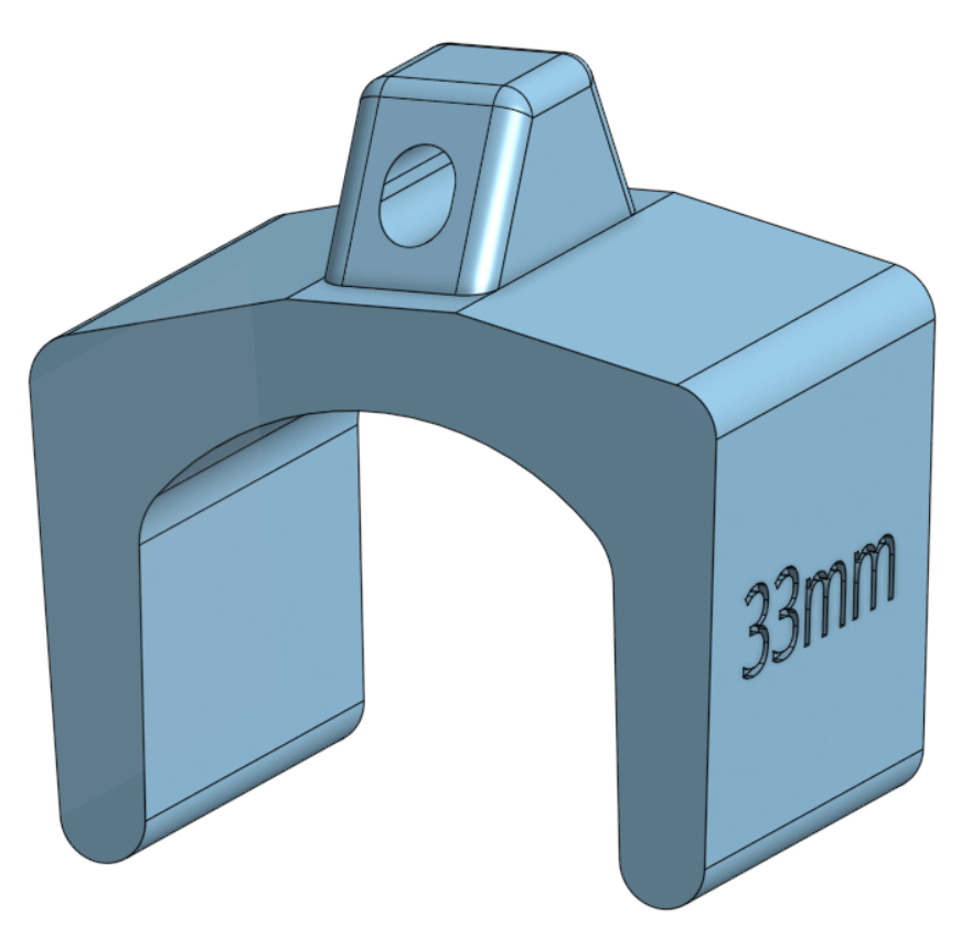 Dụng cụ để kiểm tra độ rộng lốp tối đa cho các cuộc đua cyclo-cross theo quy định của UCI (Union Cycliste Internationale). Độ rộng tối đa được phê duyệt là 33mm. Nên in với độ dày lớn (40%) và nhiều lớp vỏ (4 lớp) để cứng cáp.