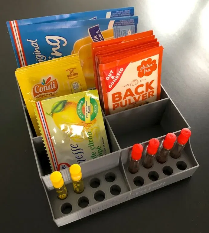 Kleine lưu trữ cho đường vani, bột nở, bột pudding và chai hương liệu. Phiên bản V2 với những thay đổi nhỏ hơn để dễ in hơn.