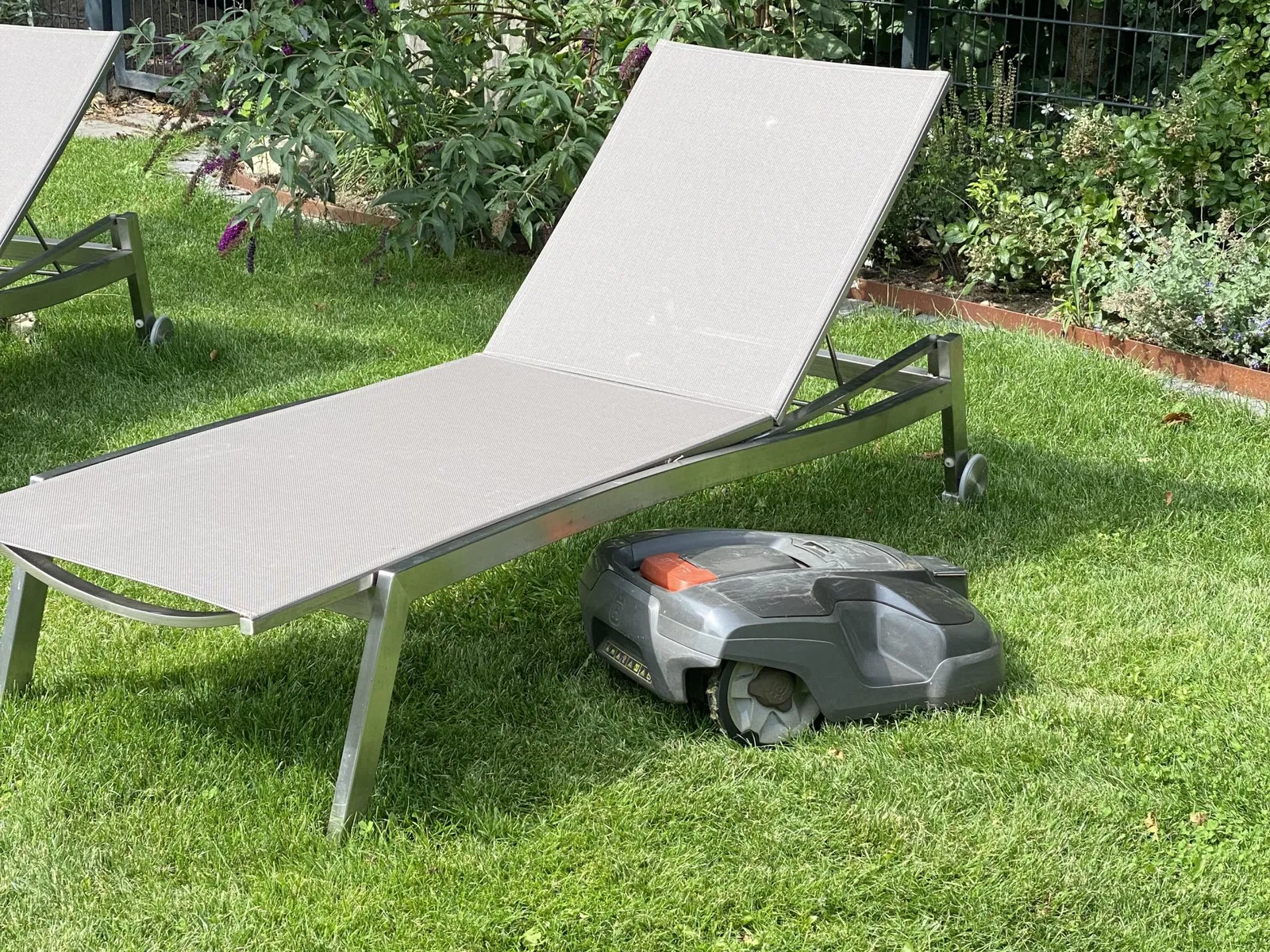 Máy cắt cỏ robot của chúng tôi (husqvarna 315) thường va chạm với những chiếc ghế tắm nắng ở phía sau, vì chúng thấp khoảng 5cm khiến máy không thể đi qua phần sau. Vì vậy, tôi đã tạo ra một chân thay thế để nâng phần sau này lên khoảng 5cm → không còn va chạm nữa!