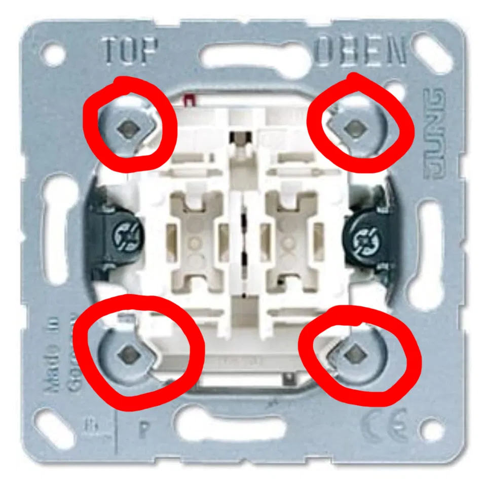 Giá đỡ IKEA STYRBAR có thể dễ dàng gắn bằng vít. Tôi có công tắc tường hiệu JUNG, nhưng nếu các nhà sản xuất khác cũng có 4 lỗ trên công tắc tường thì việc lắp đặt cũng khả thi.