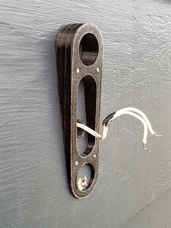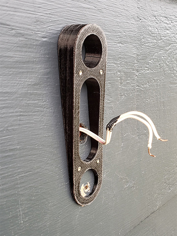 Tui làm cái này để gắn cái chuông cửa Arlo Video Doorbell lên vách gỗ tuyết tùng nhà tui cho nó đẹp và gọn gàng. Nếu không có cái này, camera nó bị ngước lên vì bản chất của vách xiên.