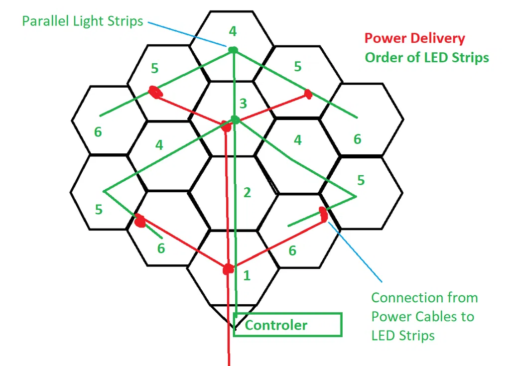 Mỗi Hexaleaf cần 60 cm Dây LED, vậy là 18 hoặc 36 LED tùy thuộc vào bạn dùng loại30 hoặc 60 LED/m. Cả hai đều ổn.