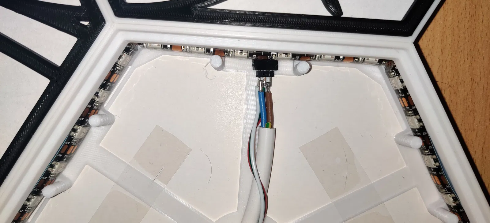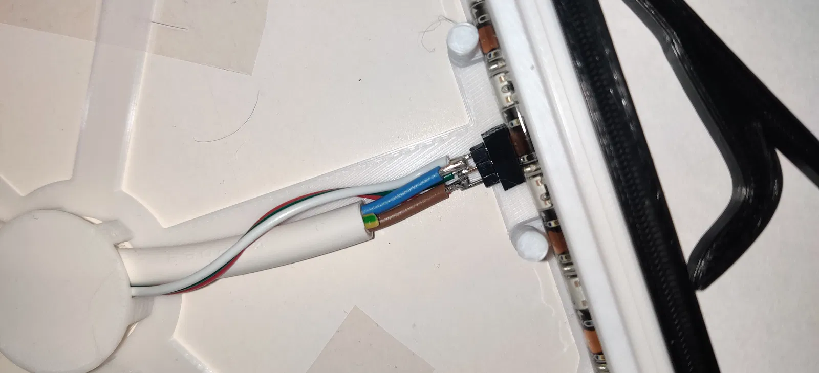 Tao đãhàn từng sợi dây LED vào dây có đầu nối pin để tao có thể hoàn thành mọi việc hàn nối trước khi lắp ráp.
