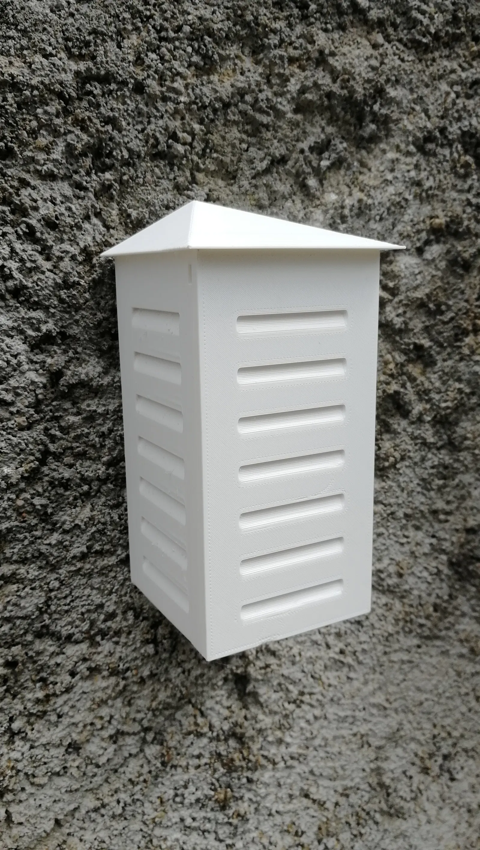 Hộp bảo vệ đơn giản cho module cảm biến ngoài trời Netatmo, giúp bảo vệ khỏi mưa, nắng và các yếu tố thời tiết khác. In bằng PETG trên Ender 3, không cần support.