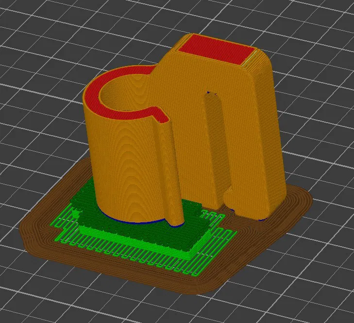 Tôi in bằng ABS với số lớp viền tối đa để cứng cáp nhất. Bạn cũng có thể in 100% mật độ ruột cũng được, nhưng tôi nghĩ nhiều lớp viền sẽ cứng hơn (cũng còn tùy). Nhớ in nằm ngang nha, chỉ cần hỗ trợ (supports) rất ít thôi. Tôi có làm sẵn bản trái với bản phải, tuy nhiên bạn xài chung 1 bản cho cả hai bên cũng được.