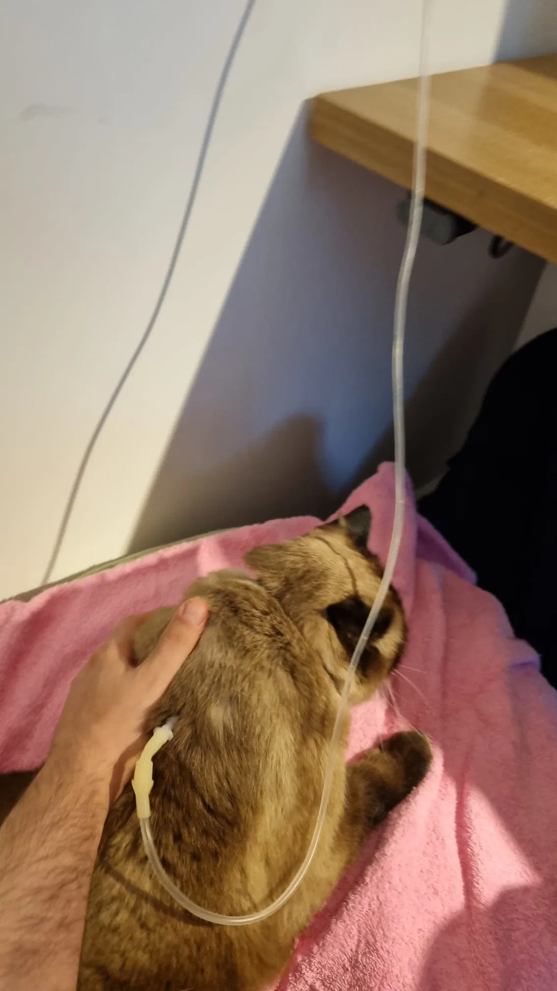 Con mèo của tôi cần truyền dịch IV cho thận vài ngày một lần nên tôi đang tìm một giải pháp để có thể đặt nó trên bàn làm việc của tôi trong khi tôi làm việc để tôi có thể để mắt đến nó.