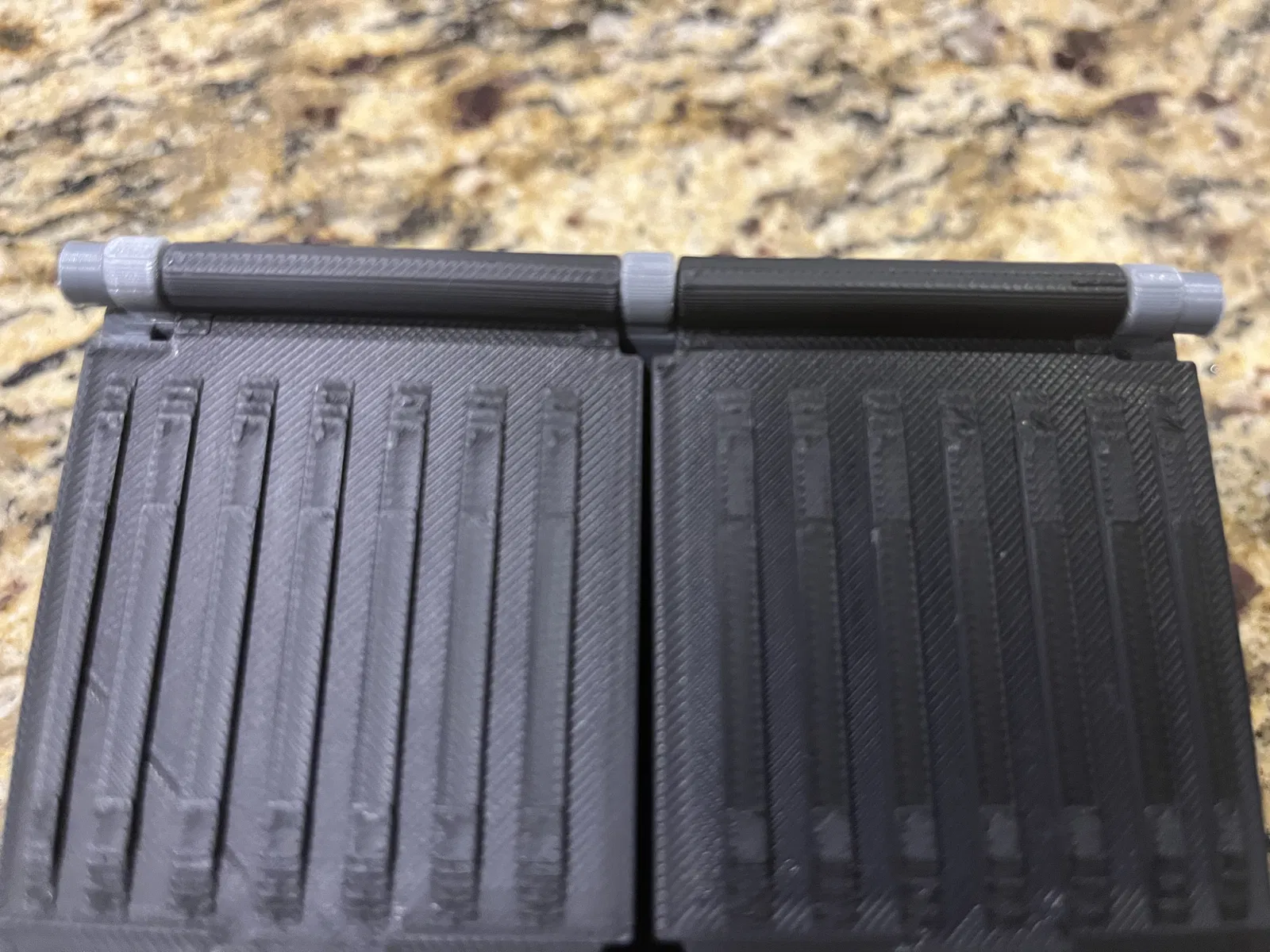 Đây là bản lề in được cho thùng rác để bàn. In bản lề thẳng đứng với vành lớn. Sau khi lắp đặt, dán nắp lên.