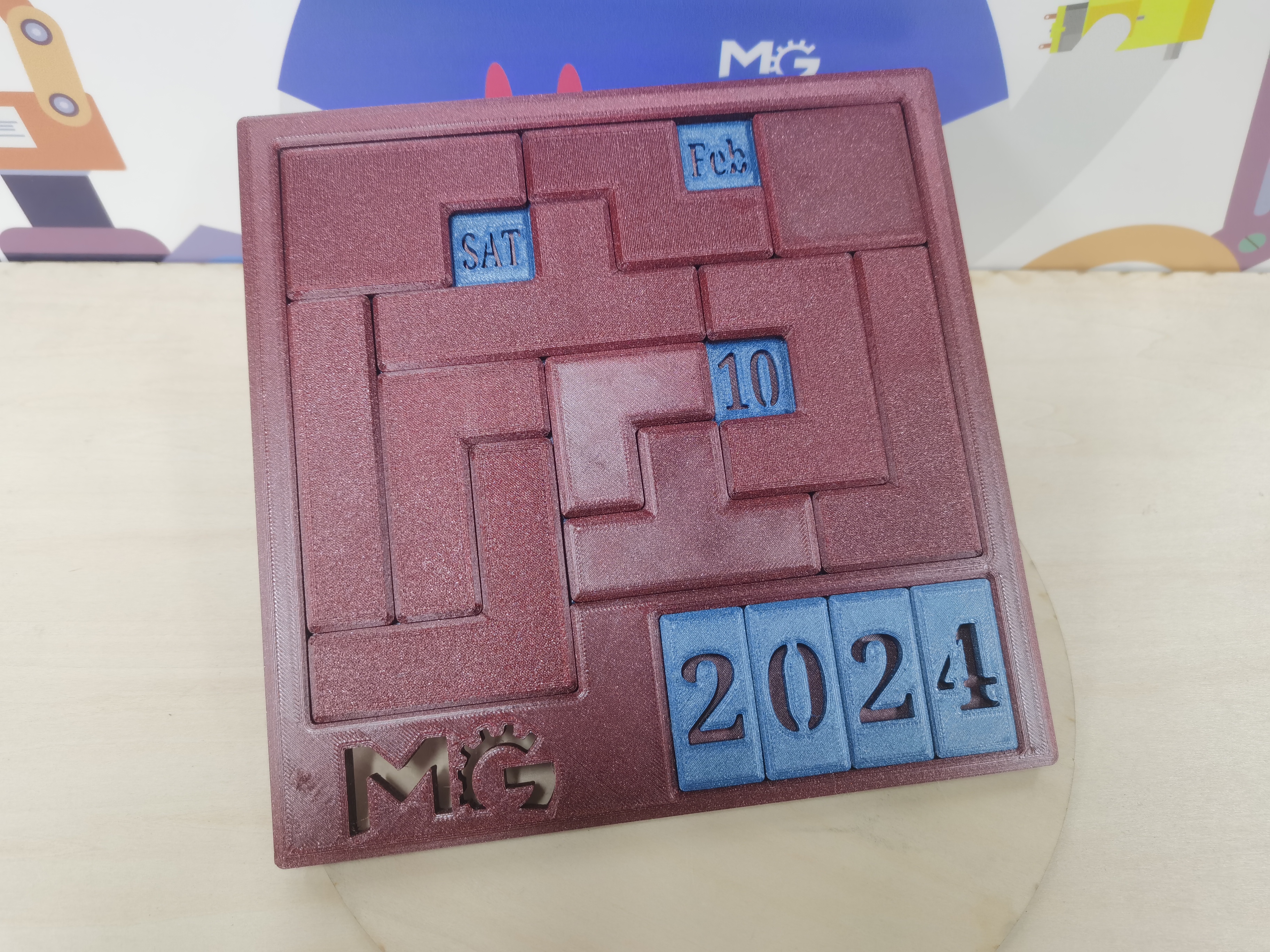 Tui rất thích mấy cái lịch dạng puzzle mỗi ngày, mà mấy cái thiết kế có sẵn á, nhiều cái là phải in đa sắc, hoặc là mấy con số nhìn không có rõ ràng gì hết trơn. Nên tui vẽ lại cái phiên bản mà không cần in đa sắc luôn, chỉ cần đổi sợi dây tóc (filament) rồi ráp lại là có hiệu ứng nhìn đẹp liền hà. Đồng thời, tui cũng có chỉnh sửa lại cái đường viền với bố cục chữ bên trong cho nó đẹp hơn mà vẫn giữ được độ hay ho, mong là mọi người sẽ có những bất ngờ mới mỗi ngày trong năm 2024 nha.