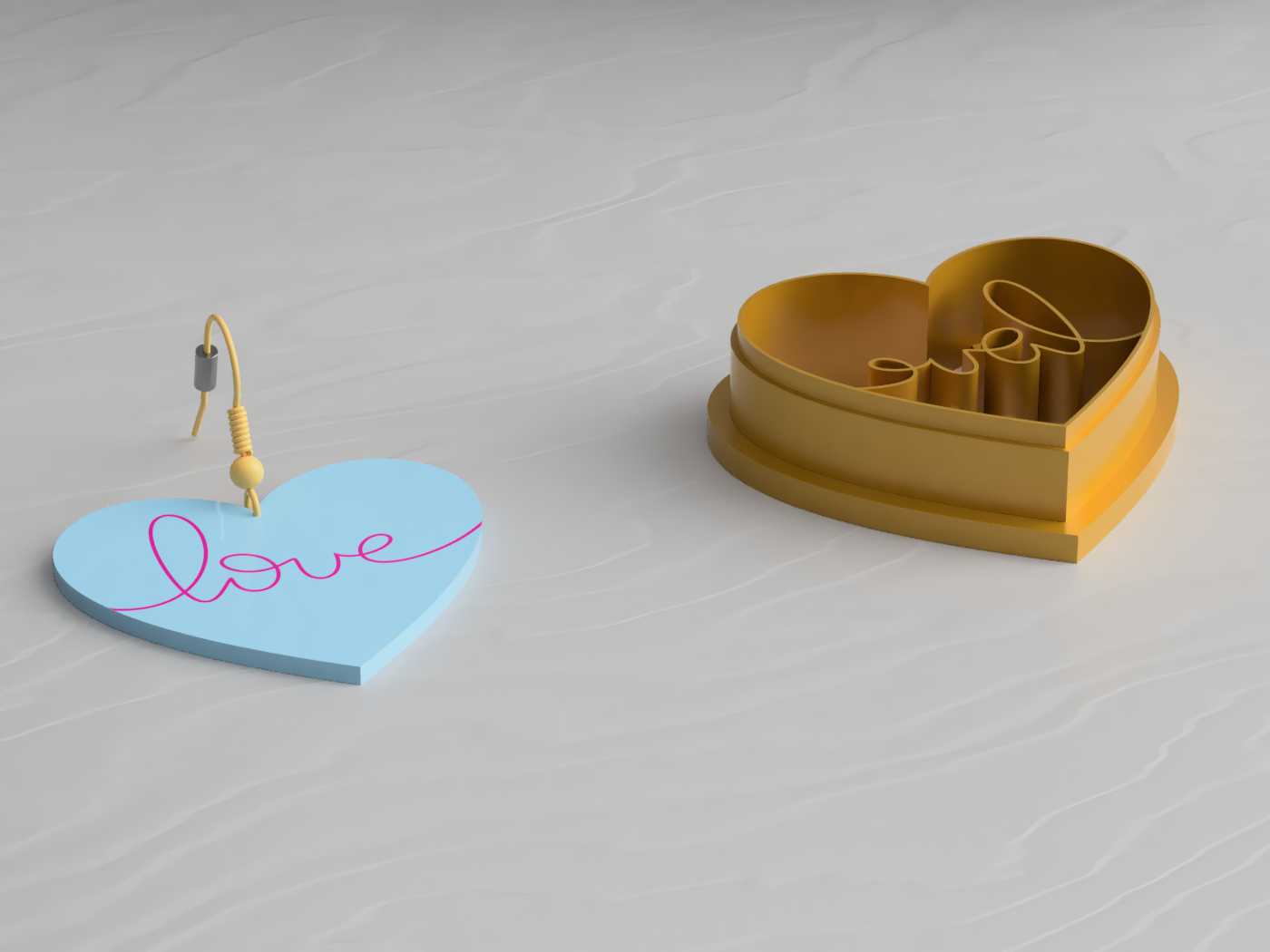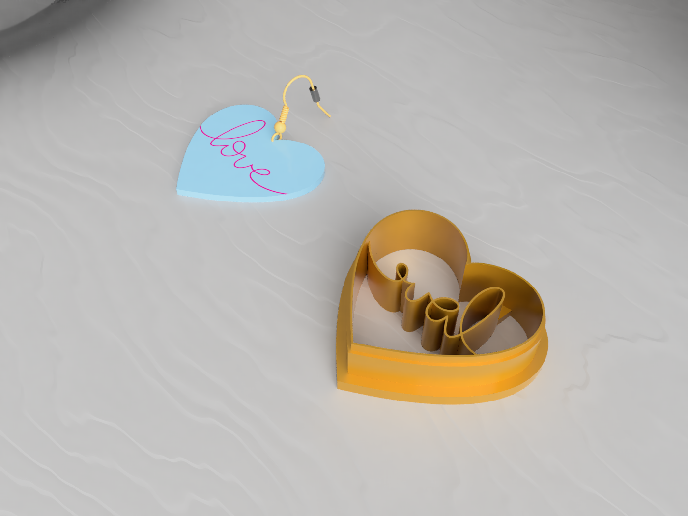 Khuôn Cắt Đất Sét STL Hoa Tai Tình Yêu Valentine