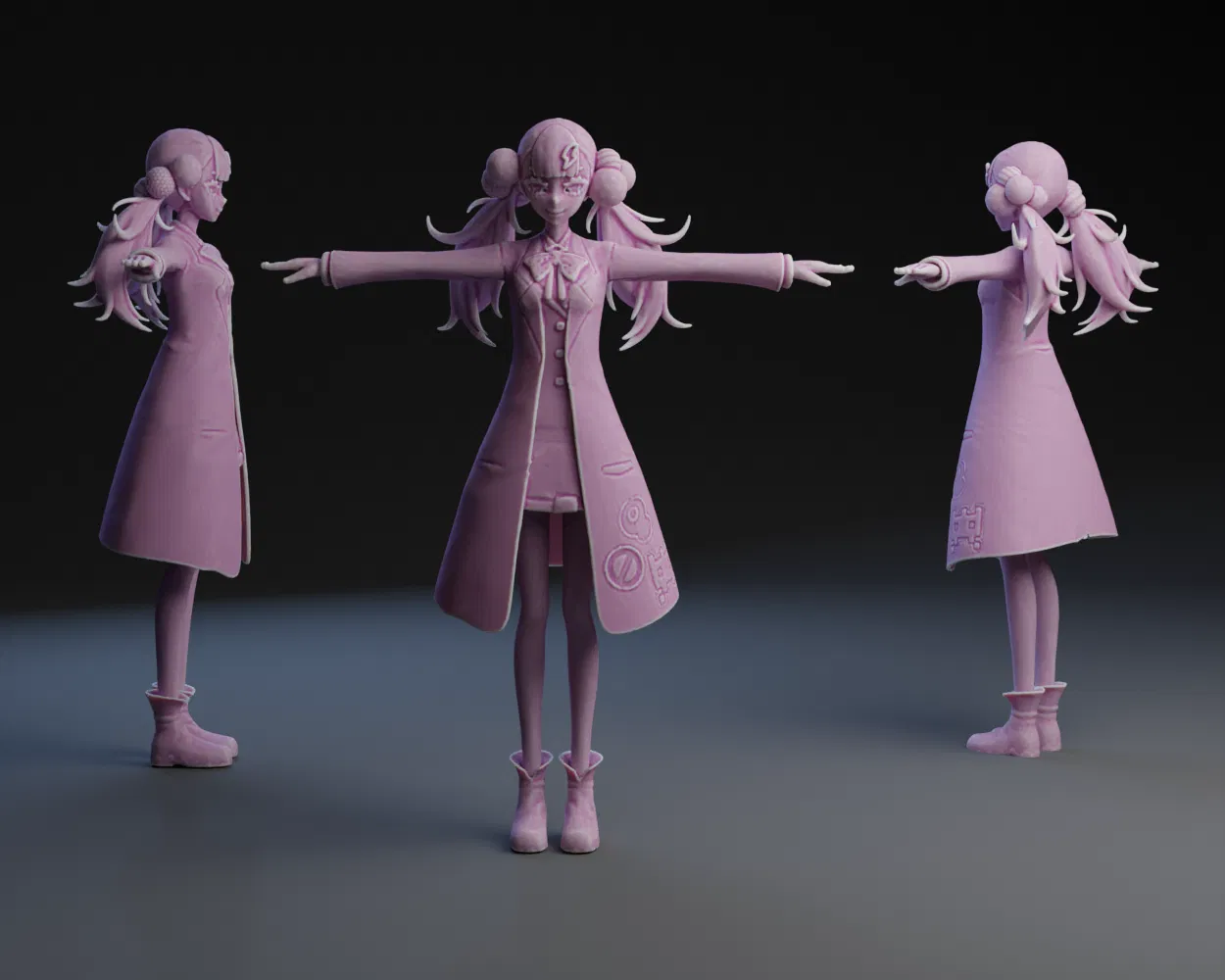 Mô hình Yuria Togoku trong tư thế T. Đây là bản nháp để lưu lại, bạn có thể tải về tự do chỉnh sửa tư thế bằng Mixamo. File được lưu dưới dạng FBX và cần chuyển đổi sang OBJ bằng Blender hoặc các phần mềm tương tự.
