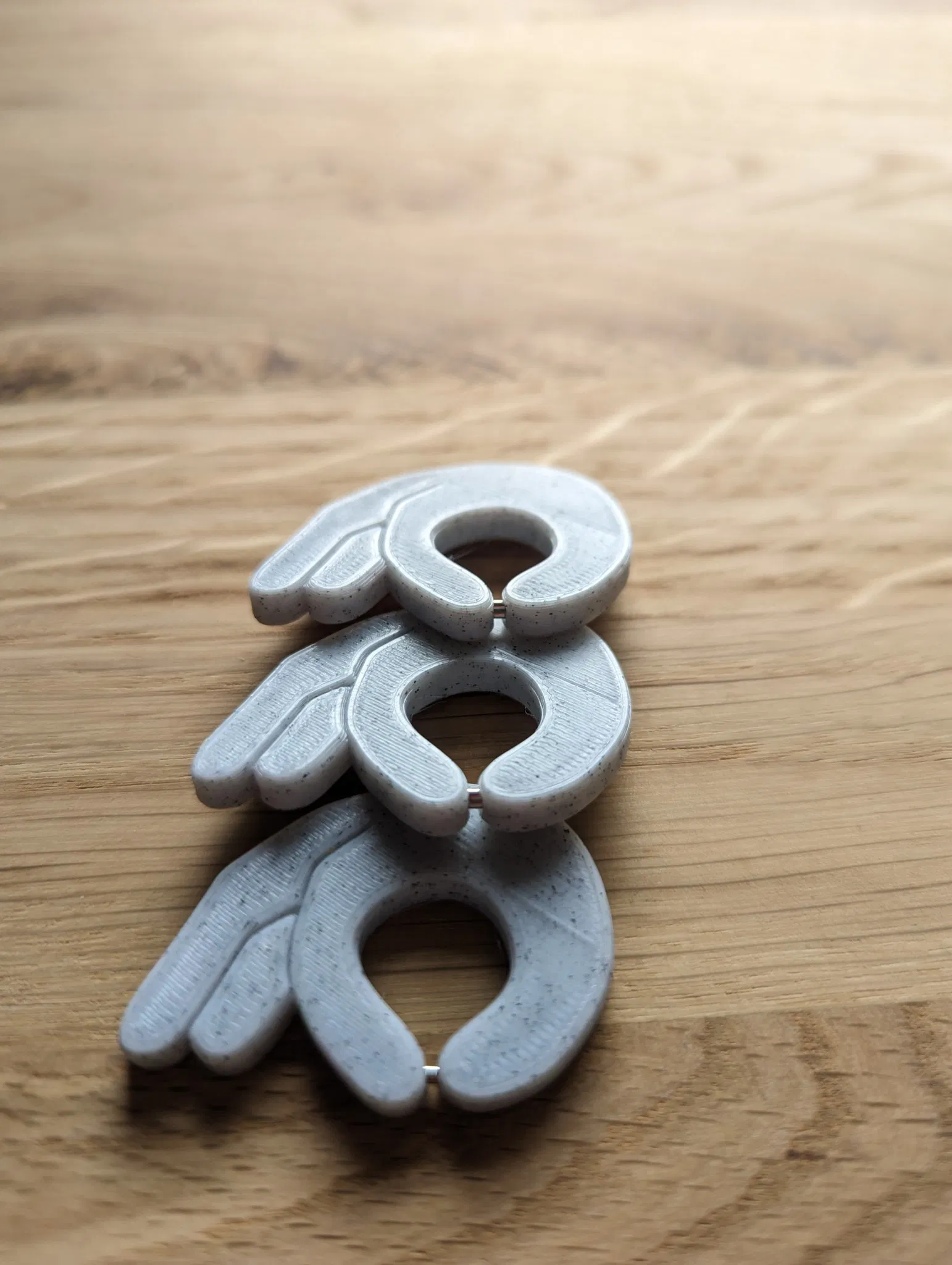 Okay zipper với vòng kim loại tích hợp để hỗ trợ ngay cả những con khỉ đột nặng nhất đang kéo trên túi của bạn. Hình dáng được vẽ bằng tay dựa trên biểu tượng cảm xúc phông chữ Noto mở. Tạm dừng in ở đúng vị trí - lý tưởng là sử dụng bộ điều chỉnh gcode M600/M0 trong slicer của bạn - chèn vòng móc khóa, tiếp tục in. Tôi đã sử dụng những vòng kim loại này () kích thước 20mm cho phần chèn và kích thước 8mm cho kết nối với túi. Liên hệ với tôi để sử dụng thương mại.
