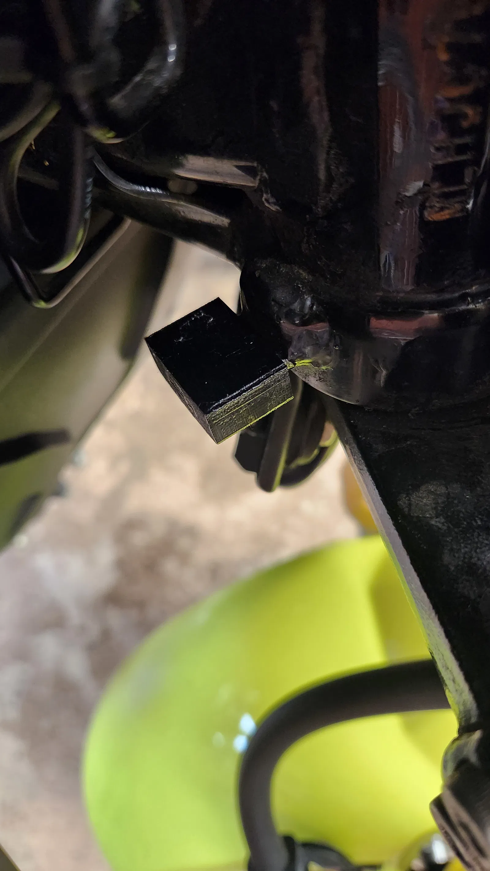 Tôi đã thử cua xe và làm cong cái miếng giới hạn lái zin, nên mỗi lần đánh lái hết, đèn xi nhan sẽ va vào quây áo. Tôi đã thiết kế cái này để trượt lên trên miếng zin để nó không còn va chạm nữa.