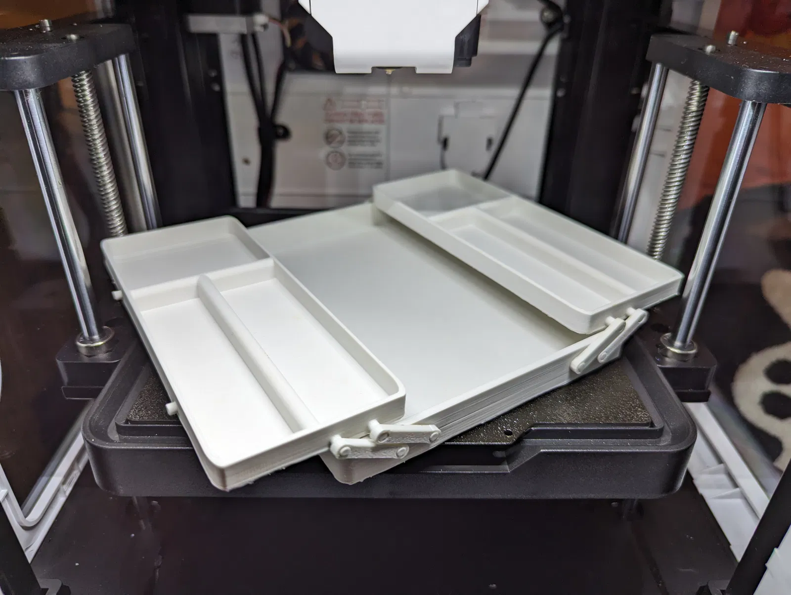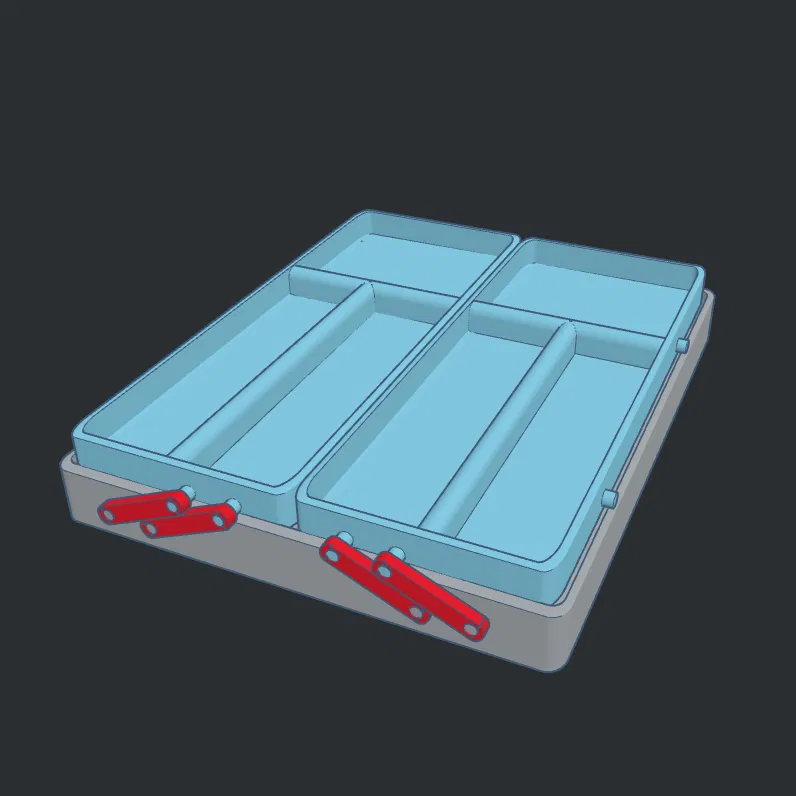 Cái này được làm cho cuộc thi Hộp đựng dao kéo năm 2024. Tôi thiết kế cái này để tận dụng không gian thường bị bỏ trống bởi các hộp đựng xếp chồng lên nhau và cho chúng gập ra để bạn có thể lấy những thứ ở dưới. Bản in này rất lớn, hãy điều chỉnh kích thước cho vừa với ngăn kéo của bạn và cắt nhỏ nó ra. Tôi chỉ in một cái lớn nhất có thể in được vì tôi gần hết sợi nhựa, nhưng điều này cũng cho thấy bạn có thể sửa đổi thiết kế để nó đủ nhỏ để bỏ vào giỏ dã ngoại. Nếu in nhỏ, vui lòng phóng to các cánh tay một chút để đảm bảo các lỗ đủ lớn cho chốt nếu không sử dụng vòi phun 0.2 mm