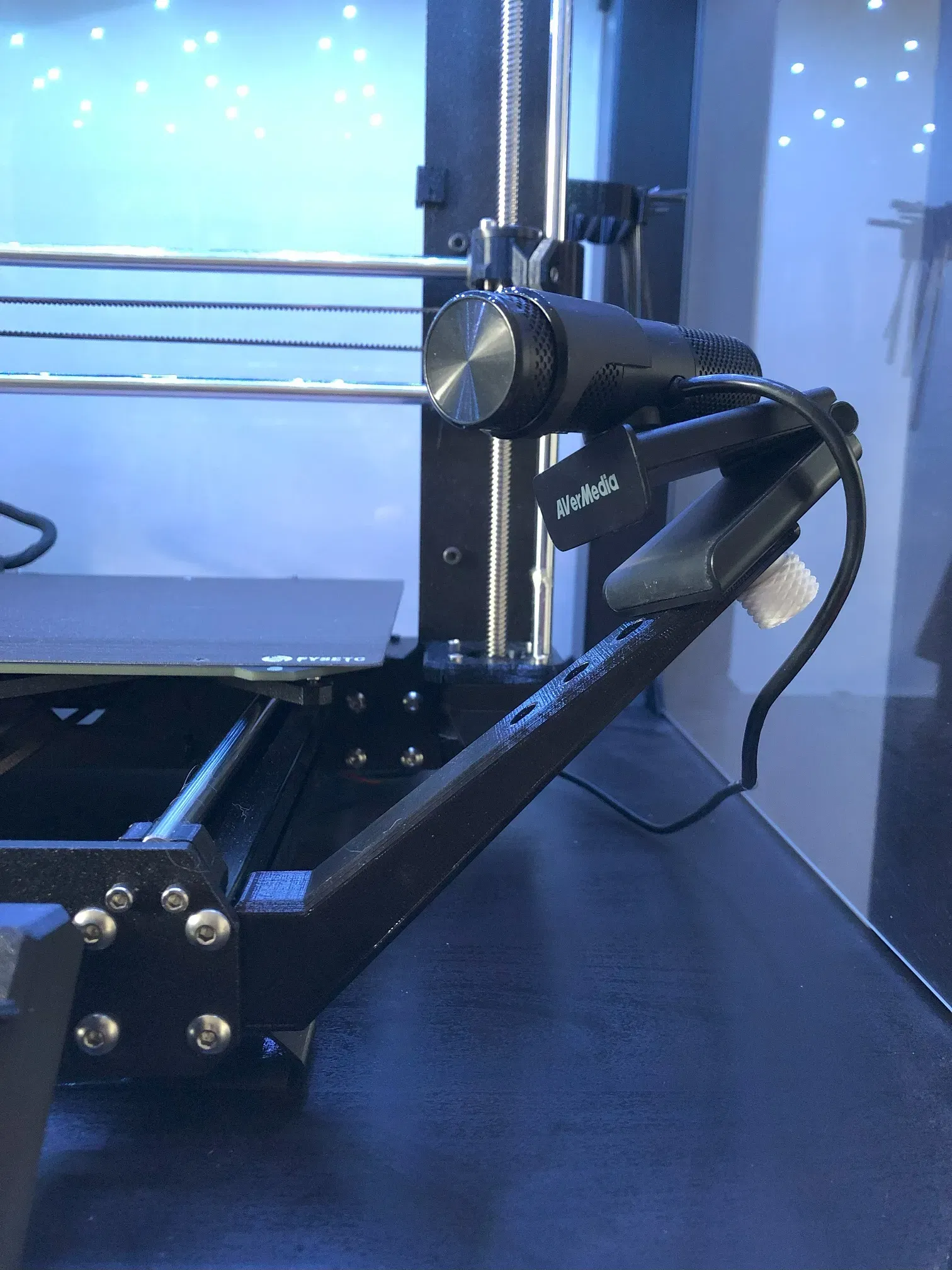 Webcam hoặc camera được gắn qua một bu lông 1/4"x20 UNC được chạy qua 1 trong 5 lỗ có sẵn để cung cấp sự linh hoạt trong việc định vị camera. Cố định camera bằng các ốc vặn có thể in hoặc phần cứng đã mua.