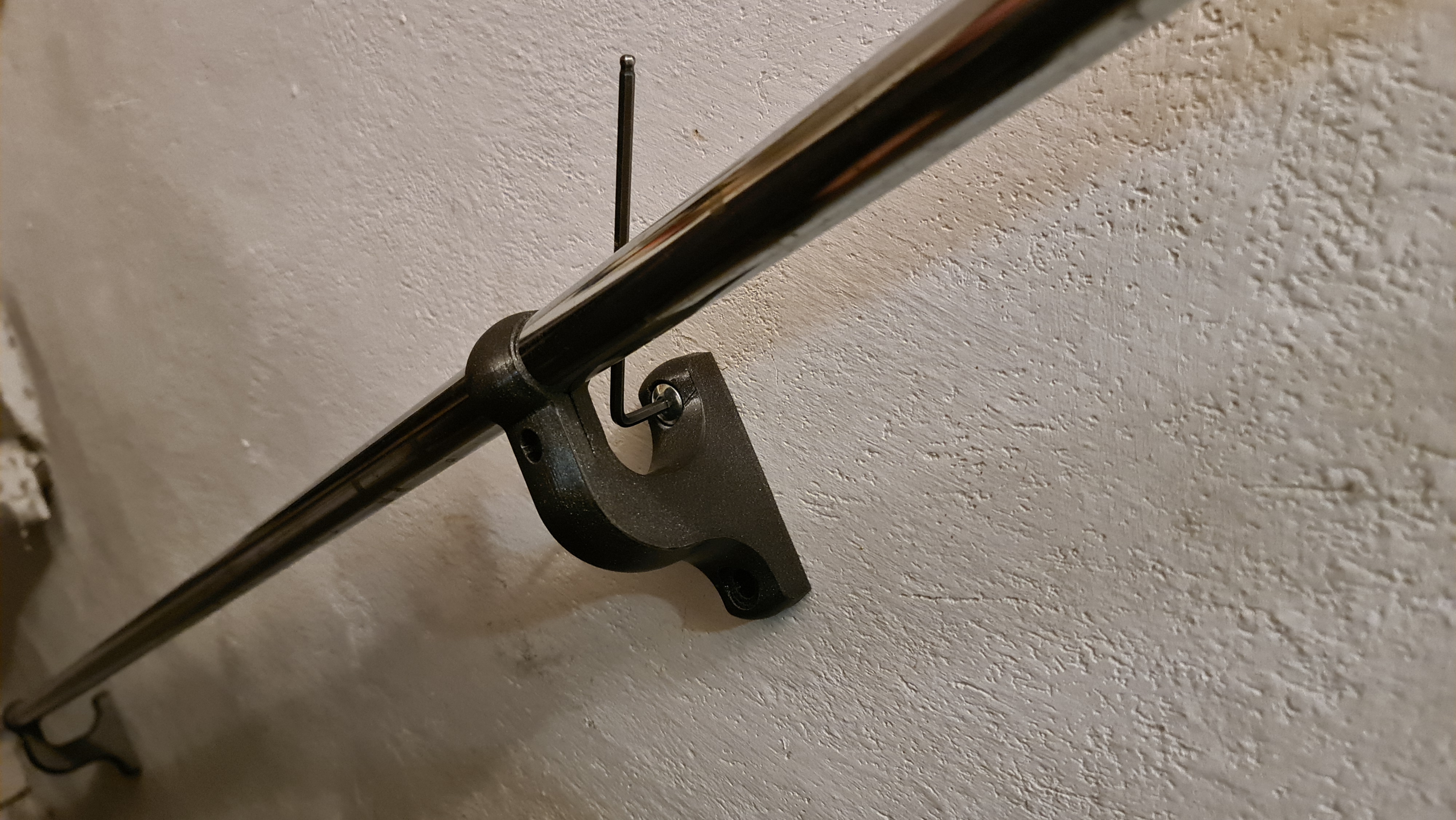 Thế hệ thứ hai của giá đỡ tay vịn tuyệt vời. Dùng để kẹp ống hoặc gắn tường, nên in với nhiều lớp vỏ và độ đặc ruột hợp lý để tăng độ bền. Lưu ý: Luôn kiểm tra độ bền của bộ phận in trước khi sử dụng.
