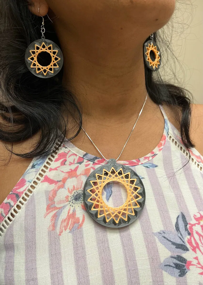 Mẫu này có khung và họa tiết đường kẻ riêng cho bông tai và mặt dây chuyền, nên bạn tha hồ in với nhiều màu sắc khác nhau để tạo vẻ ngoài độc đáo nhé!