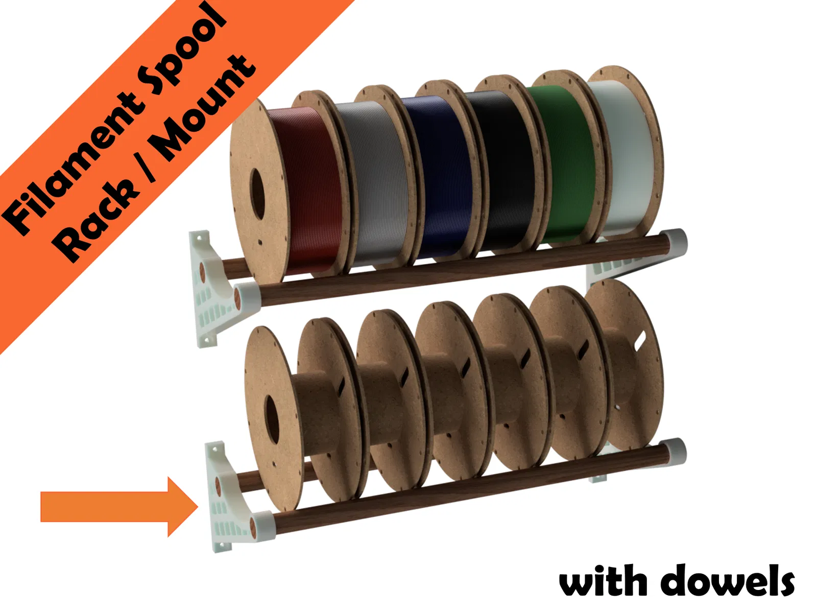 Giá treo cuộn filament đơn giản kèm các chốt gỗ cần thiết (file cho ống 20-28mm, bao gồm cả ống 3/4 và 1 inch) cho cuộn filament 1kg của bạn. Lưu ý in với độ đặc ruột cao hơn và vật liệu cứng cáp hơn để đảm bảo độ bền.