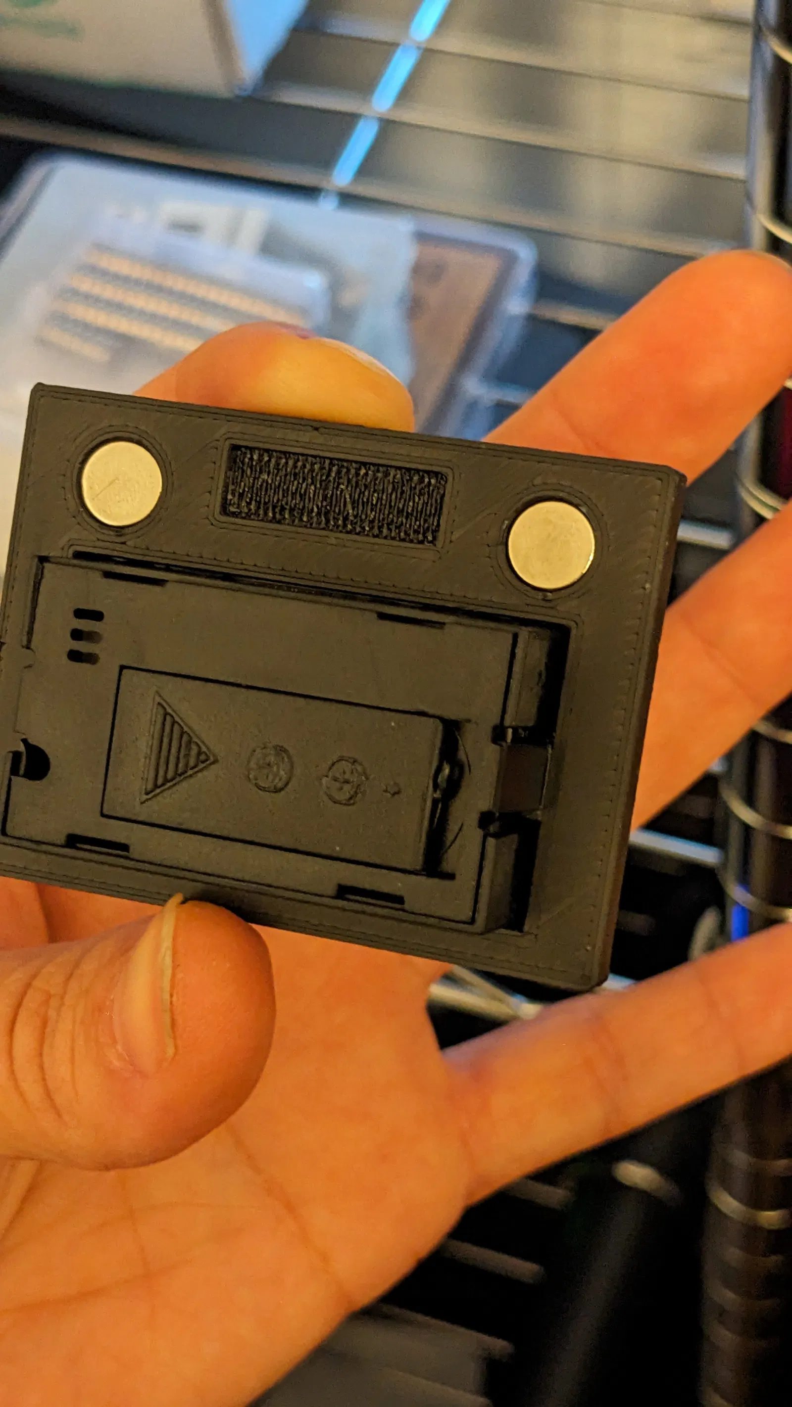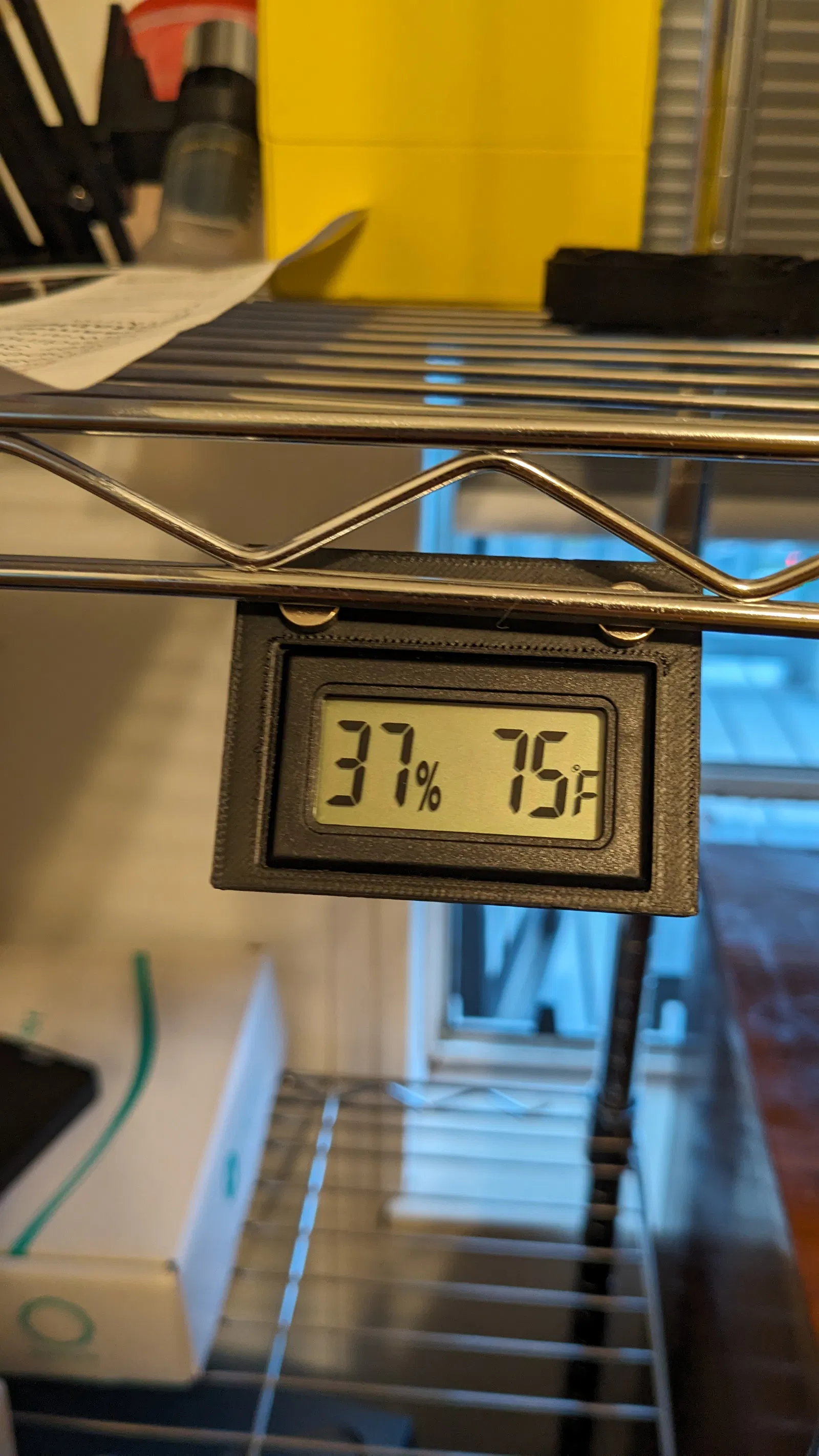 Chân đế nam châm giữ nhiệt kế/độ ẩm, remixed lại để vừa cái combo nhiệt kế/độ ẩm mua trên Amazon. Bản gốc rộng hơn 2mm nên giữ không có chặt.