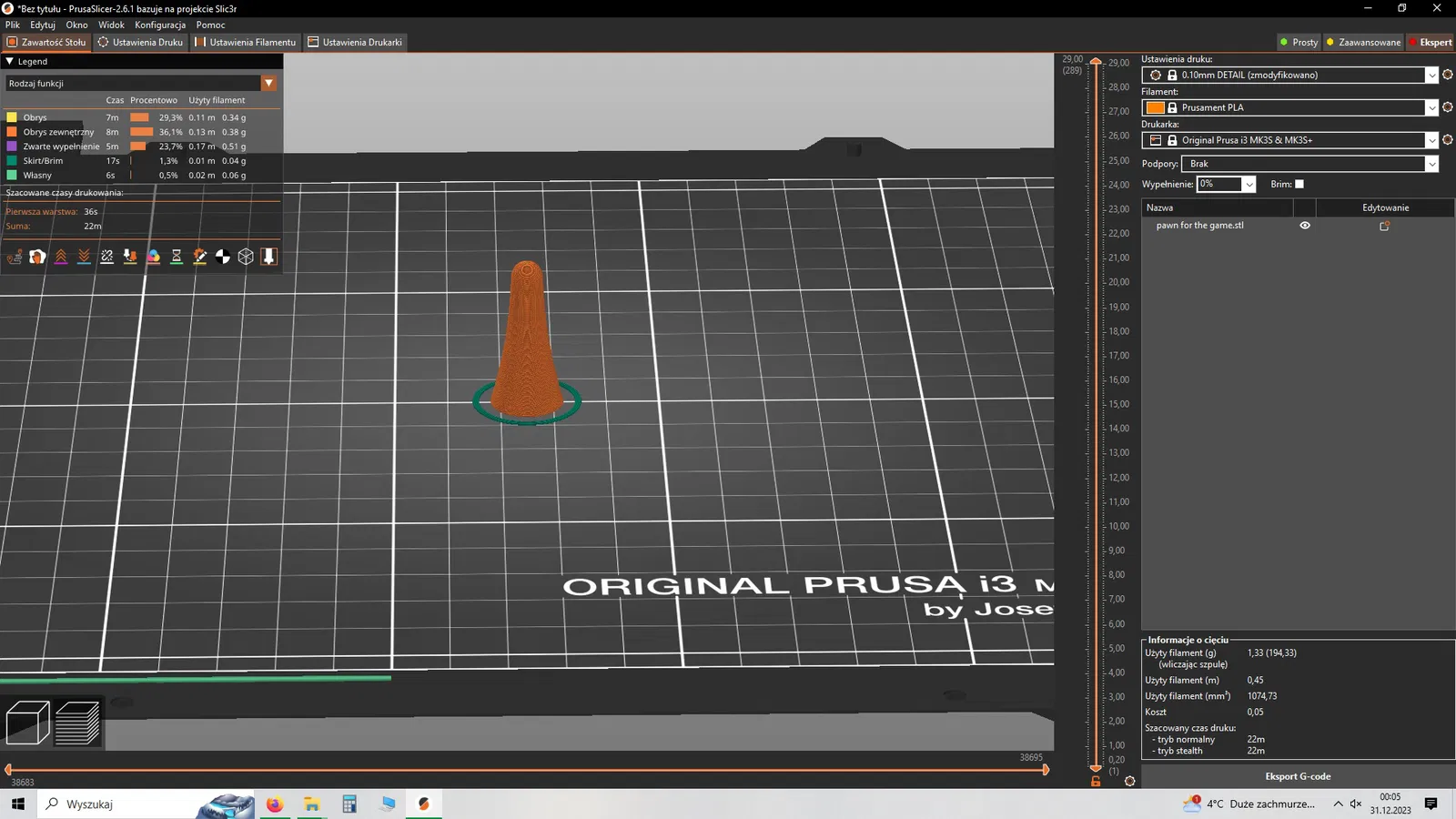 Quân cờ vua dành cho các trò chơi cờ bàn. Cầm nắm bằng ngón tay rất dễ dàng và mang lại cảm giác thích thú khi sử dụng. Khi in với đầu phun 0.4mm, mình đề xuất dùng 2 đường biên. Mật độ đổ đầy 0%. Khi in với lớp dày 0.1mm, hãy cài đặt các lớp đáy đặc: khoảng 40 lớp. Quân cờ sẽ nặng ở phần đáy, giúp nó ổn định và không bị đổ dễ dàng. Chúc bạn chơi game vui vẻ :)