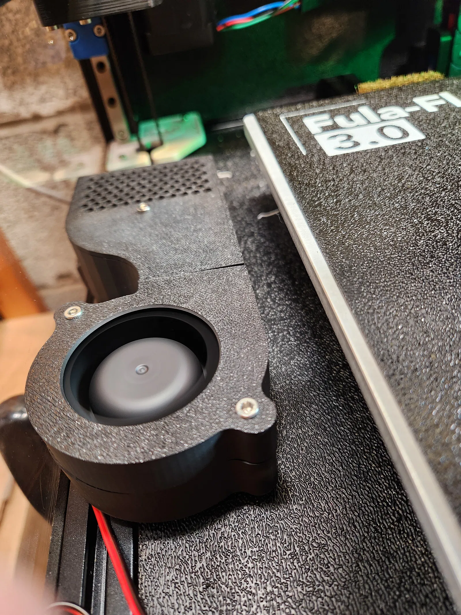 Thiết kế để gắn quạt thổi kích thước 60x60x28mm nhằm lưu thông không khí bên trong máy Voron v2.4 của bạn qua các viên carbon.