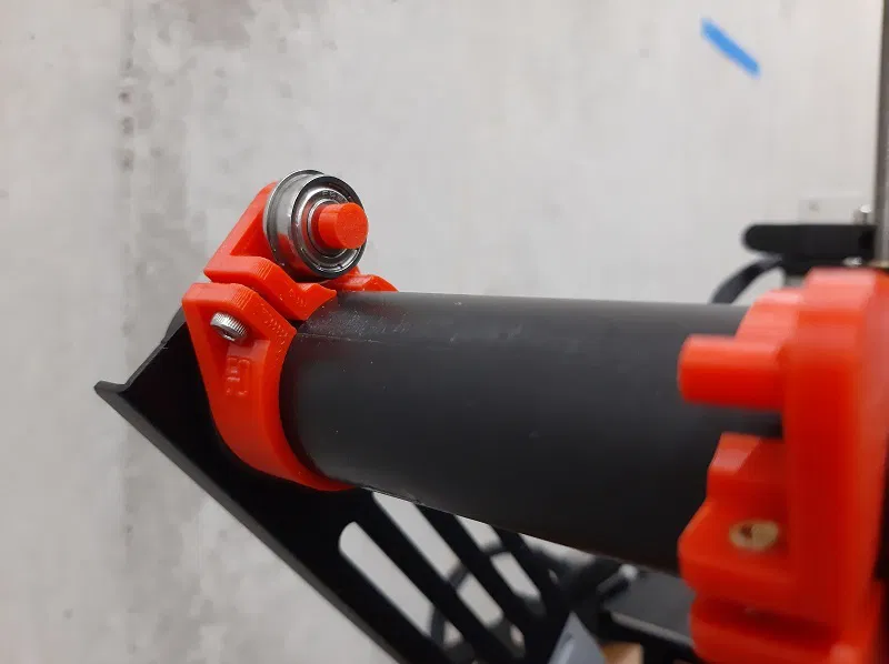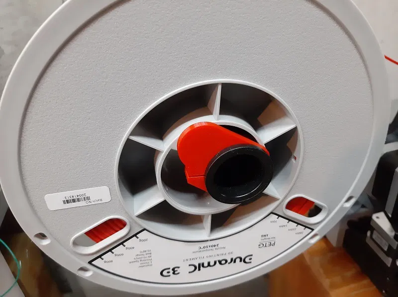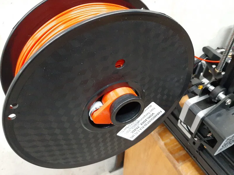 Tôi đã nghĩ ra thiết kế này, sử dụng trục giữ spool zin của máy để giữ mọi thứ gắn liền với máy in, đồng thời cho phép cuộn dây quay dễ dàng, nhưng chỉ khi đang đẩy vật liệu.
