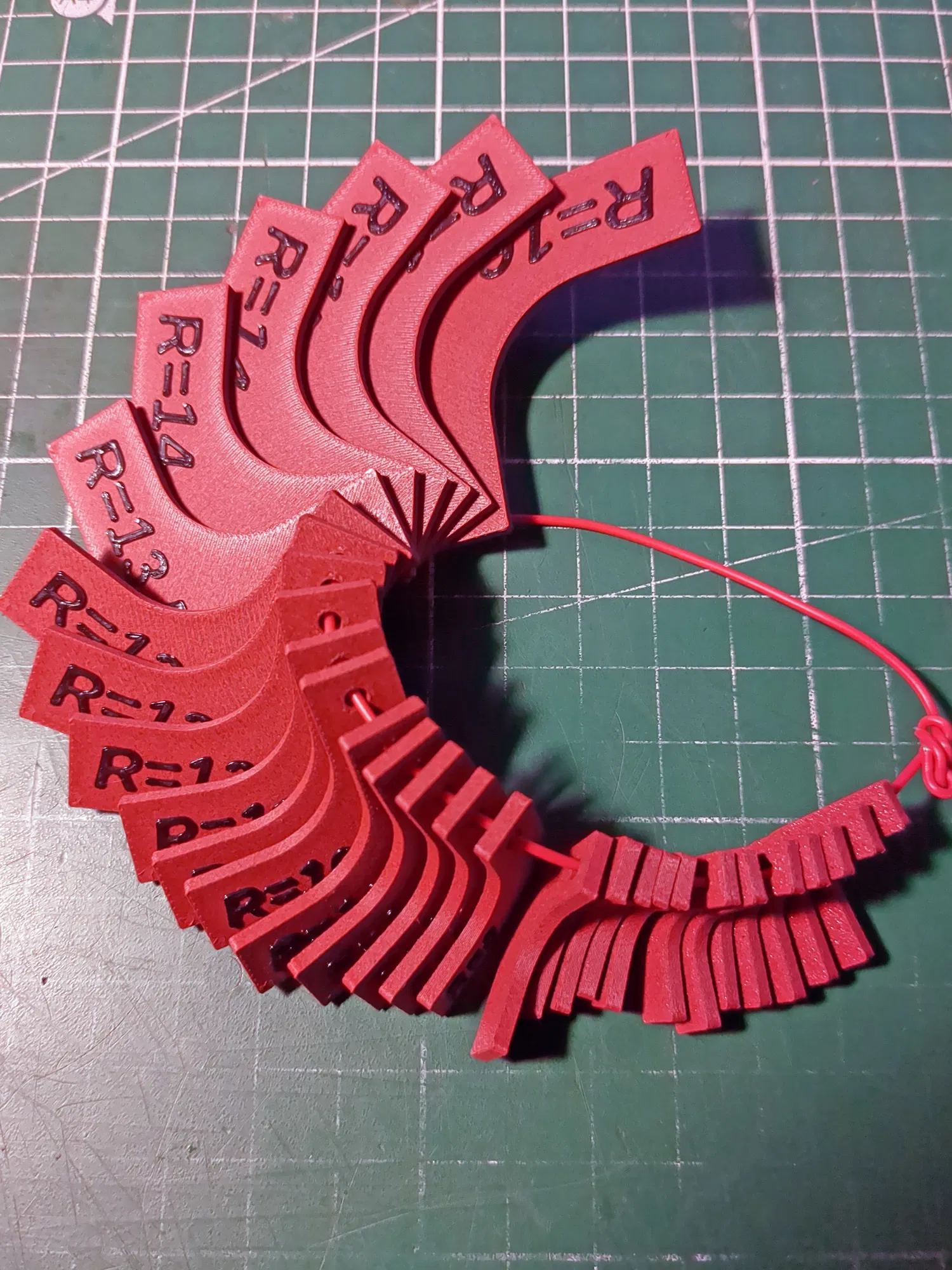Bộ đầy đủ các thước đo bán kính từ 2 đến 16 mm, với bước nhảy 0.5mm, in nhanh chóng (vừa cho máy Mini). File OpenScad tùy chỉnh hoàn toàn để bạn tự tạo thước đo của riêng mình. Mở file bằng OpenSCAD** * hoặc một trong các phiên bản trên trình duyệt **** và thay đổi thông số theo ý muốn.