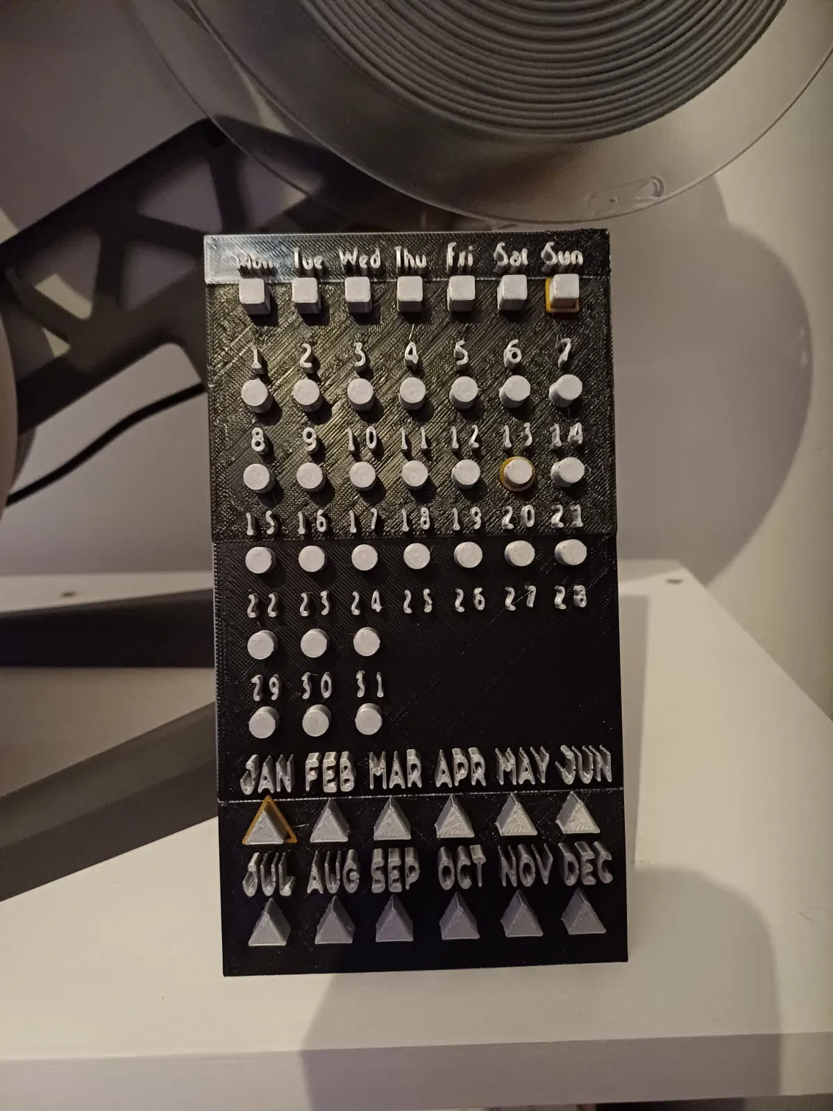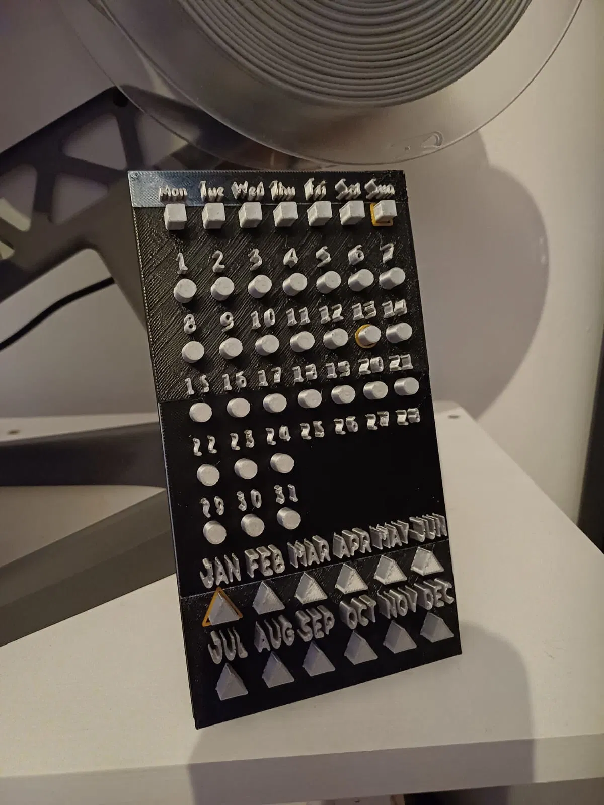 Đây là một cuốn lịch thiết thực có vòng xoay cho văn phòng hoặc bàn làm việc của bạn. Nếu bạn không thấy vòng xoay vừa ý, bạn có thể in chúng lớn hơn một chút. Tôi đã cố gắng làm cho tấm lịch hấp dẫn nhất có thể. Trong ảnh bạn thấy bị lem ở một góc vì tôi chọn hệ số nhân là 0.3. Bạn nên bao gồm ít nhất 0.8 trong AMS nếu bạn có.