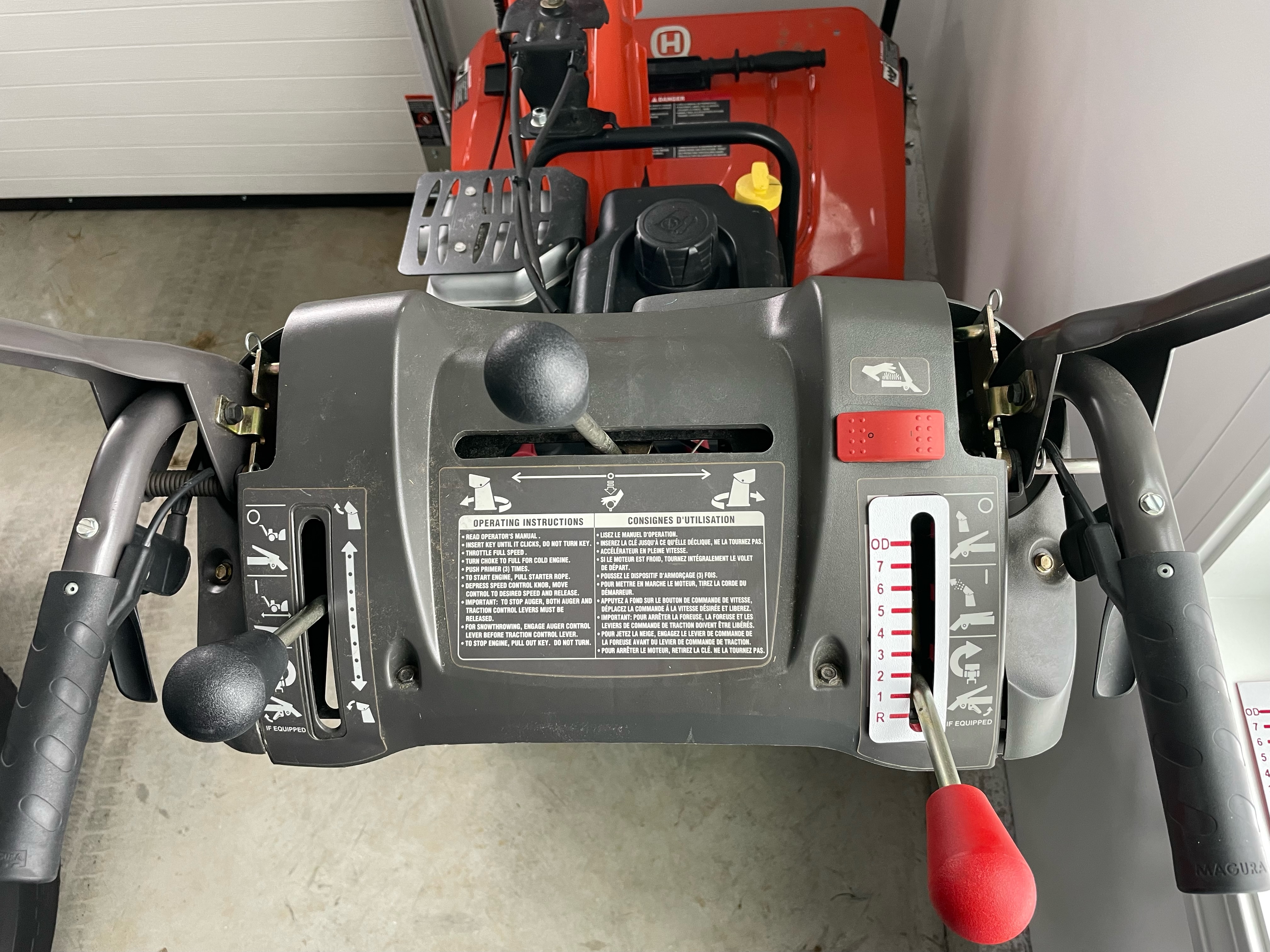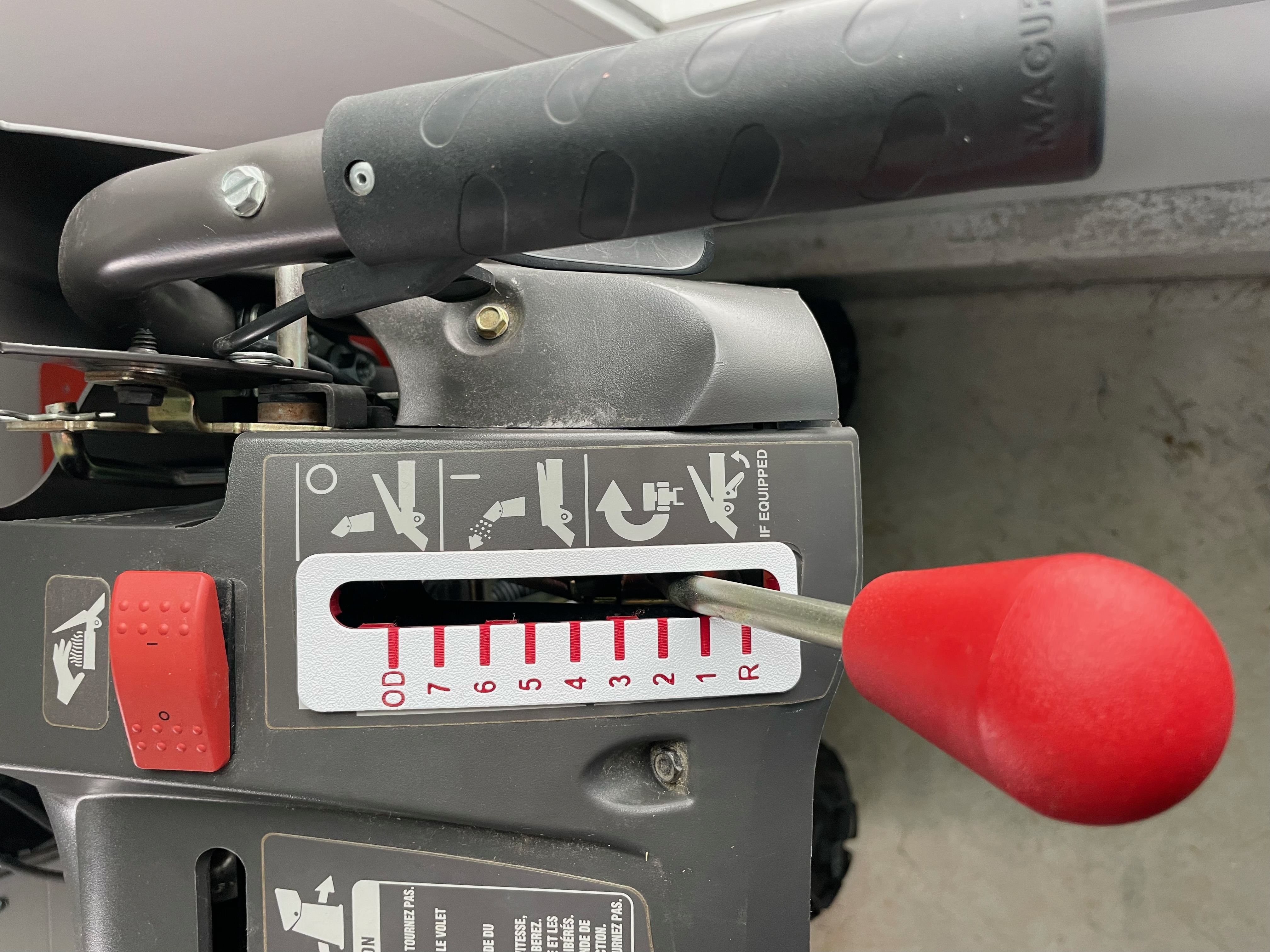 Cần số cho máy thổi tuyết Husqvarna. Cái này giúp chỉ báo số, dễ dàng chọn số 1 và 2 hơn vì máy cũ không có chỉ báo.