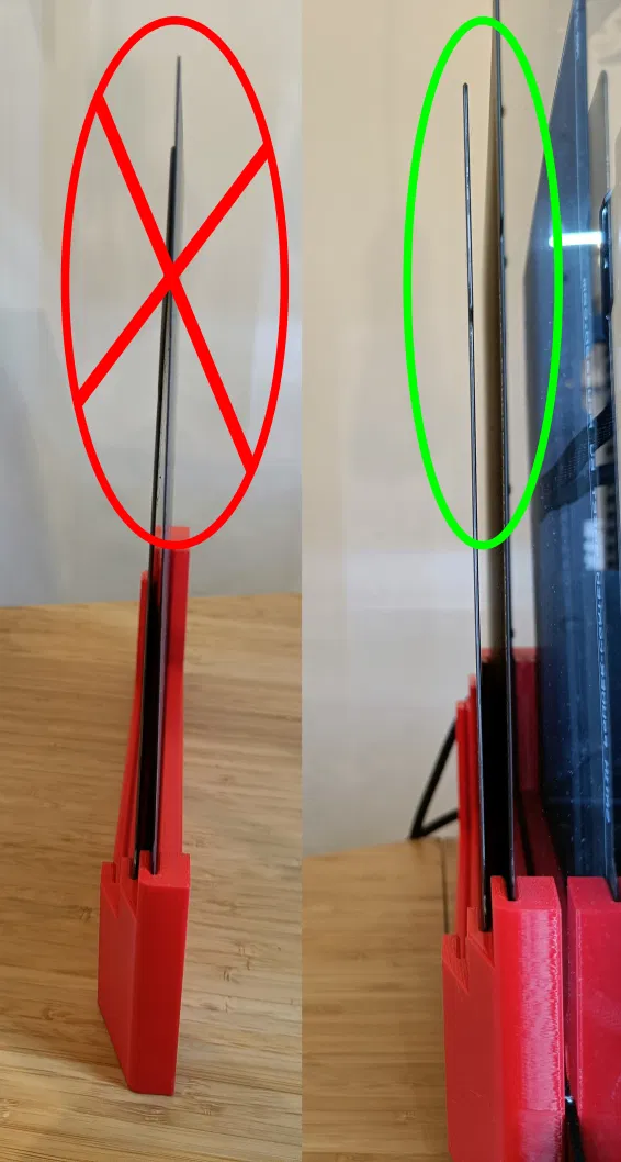 - Với mục đích giảm rung động, tôi đã thêm các chốt in ẩn ở mỗi bên. Chúng ép nhẹ các tấm kim loại vào mặt trong của giá đỡ. Điều này làm giảm nguy cơ các tấm kim loại chạm vào nhau và bị trầy xước. Xem hình ảnh thứ tư và thứ năm.