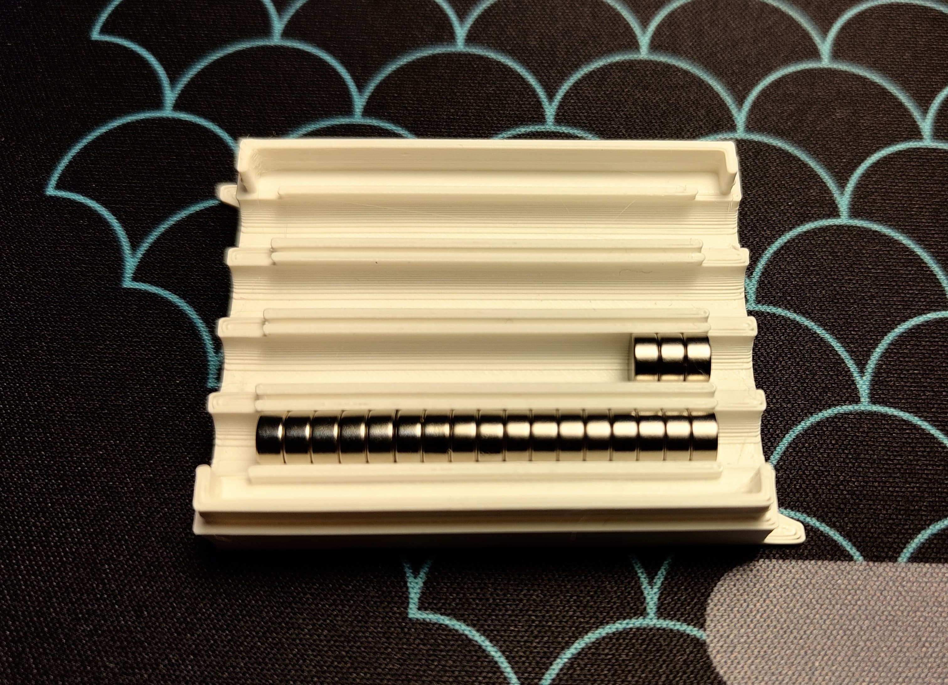 Cái hộp đựng vừa khít cho nam châm neodymium 6x3mm. Cuối cùng thì nó cũng đựng được tổng cộng 68 viên nam châm.