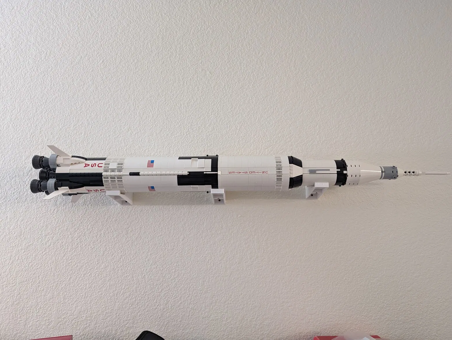 Để treo mô hình tên lửa LEGO Saturn V lên tường theo chiều ngang.