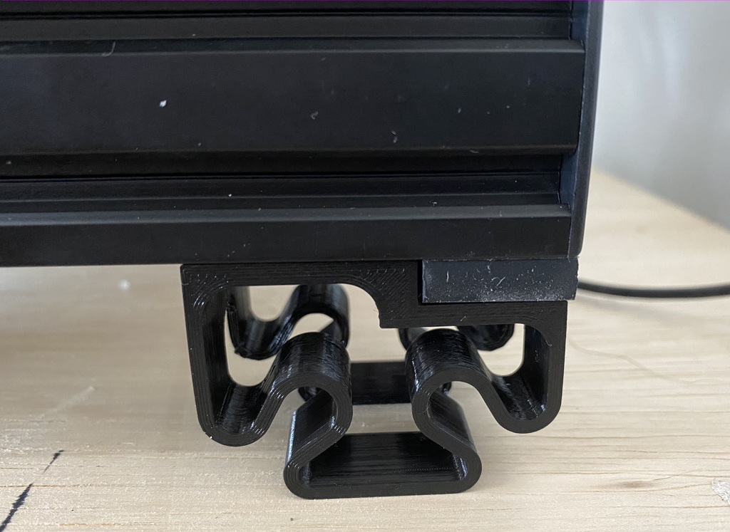 Mình thiết kế cái chân này giống "lò xo" để gắn vô cấu trúc khung máy in mà không cần chế hay tháo chân cao su zin ra. Bạn chỉ cần in 4 cái rồi trượt vô là xong.