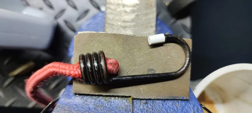 Đầu nối dây co giãn/dây bungee, giúp bảo vệ xe đạp của bạn khỏi bị trầy xước. Nên in bằng TPU, nhưng PLA và ABS cũng dùng được. Có thể cần chà nhám phần kim loại để gắn vừa hơn.