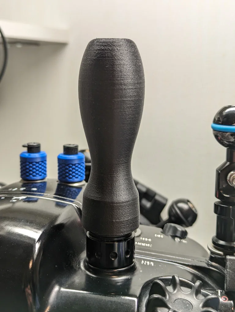 Tay nắm giúp bạn dễ dàng và nhanh chóng mở hoặc đóng van chân không Nauticam phiên bản 1, đặc biệt hữu ích sau mỗi lần lặn khi ốc xả có thể hơi cứng.