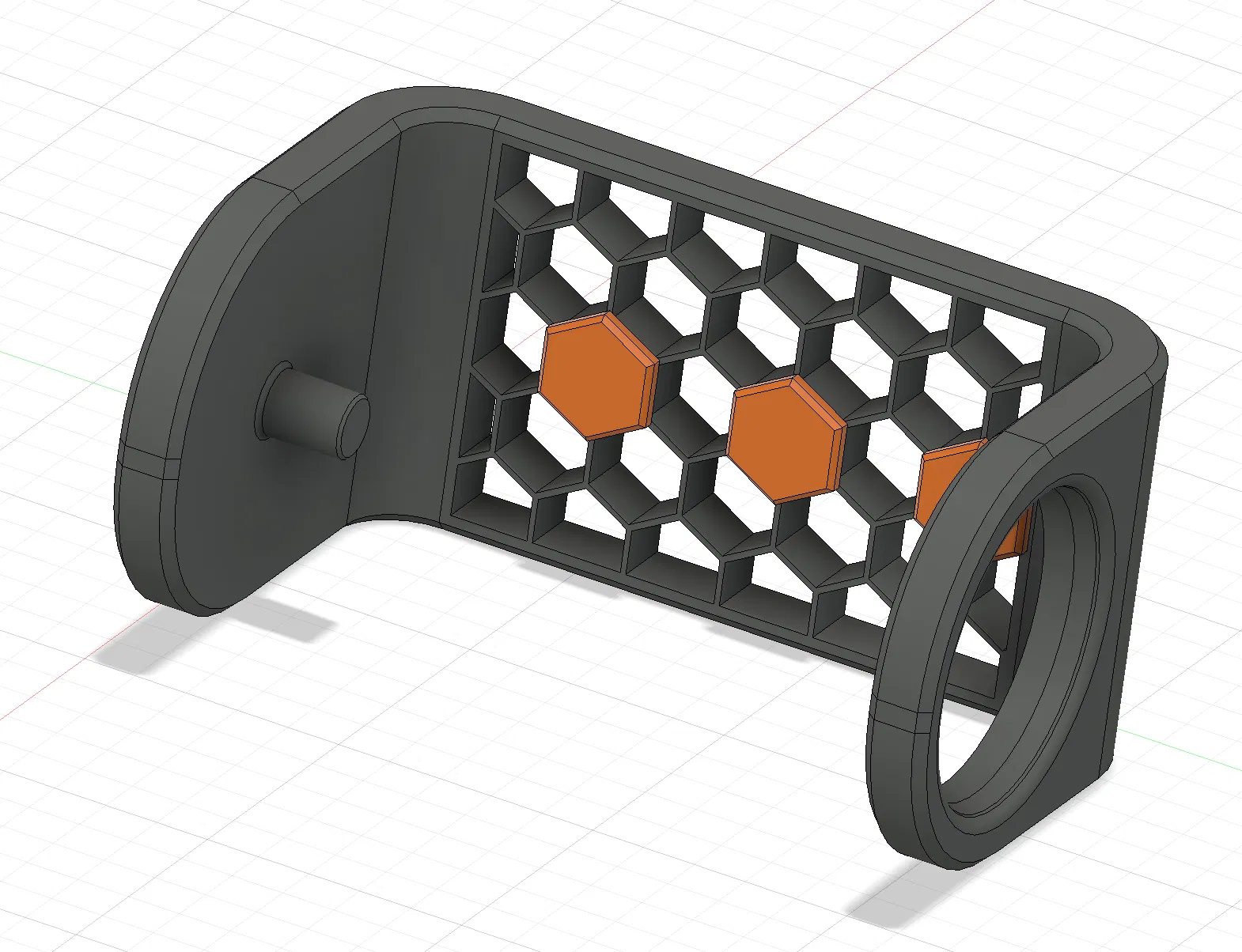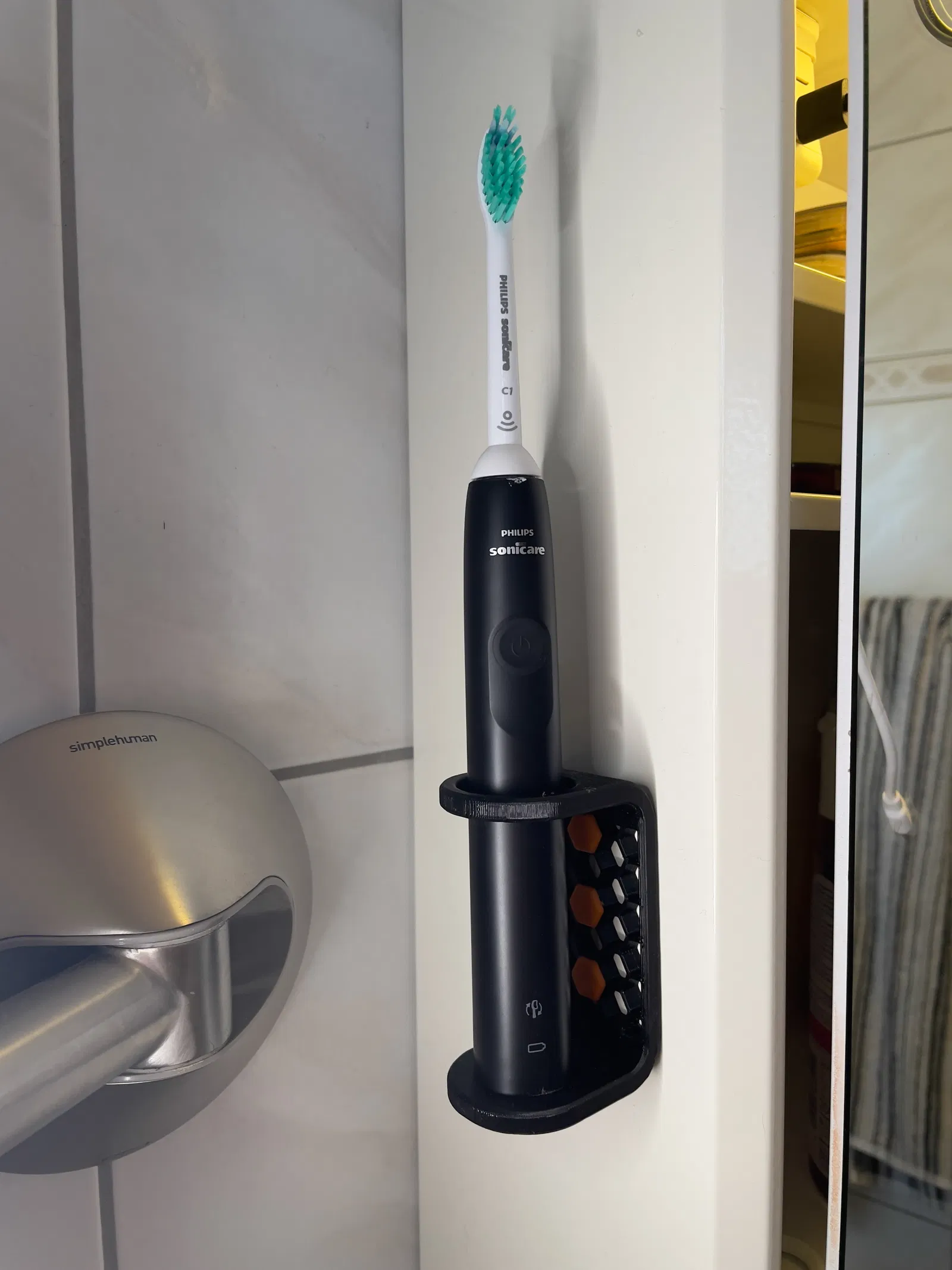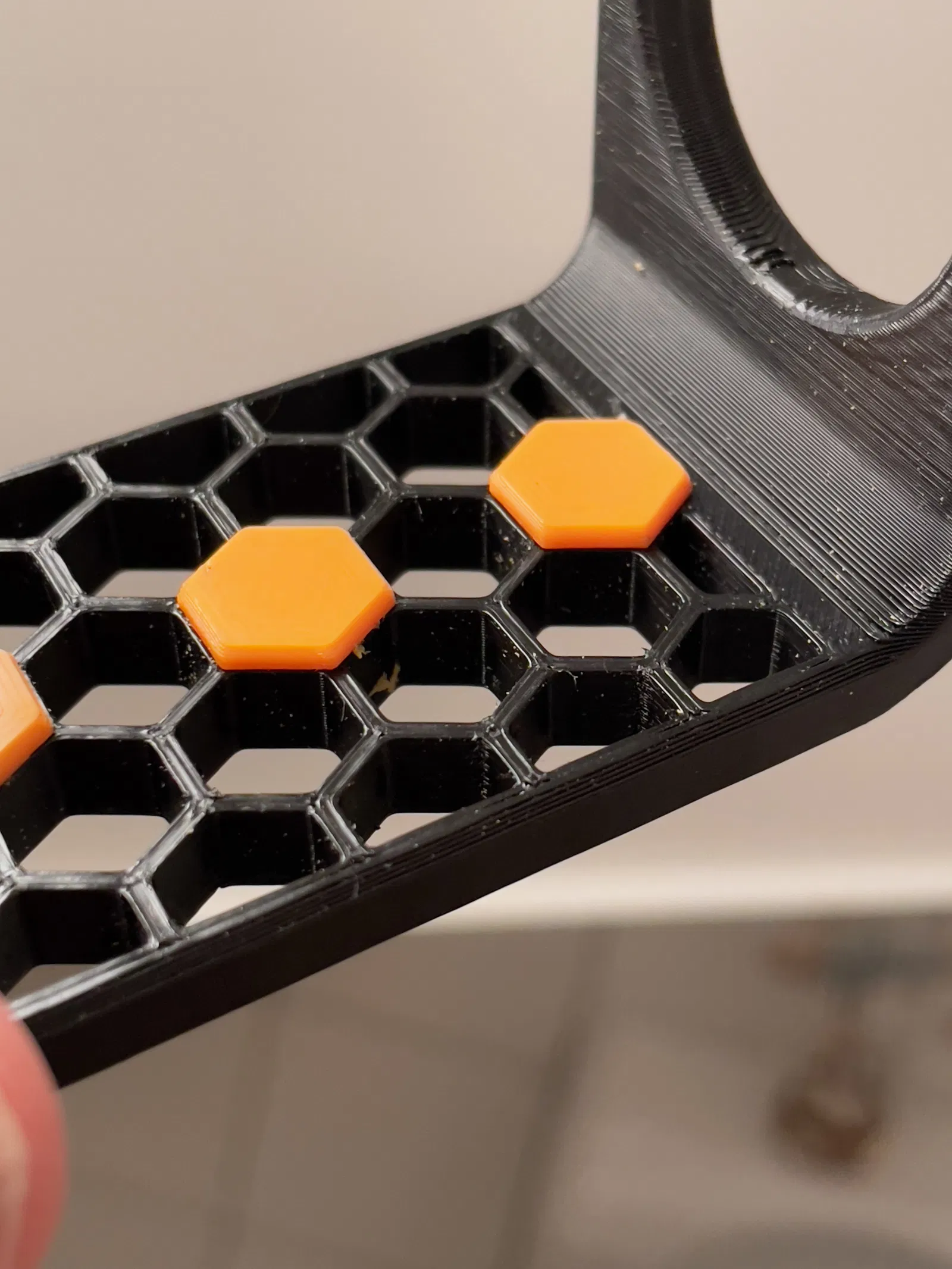 Kiểu dáng tổ ong rỗng ruột có nghĩa là mình có thể in bao nhiêu cục nam châm tùy thích, và với thiết kế này, 3 cục nam châm kích thước 8mm x 3mm là đủ để giữ bàn chải dính vào tủ rồi.
