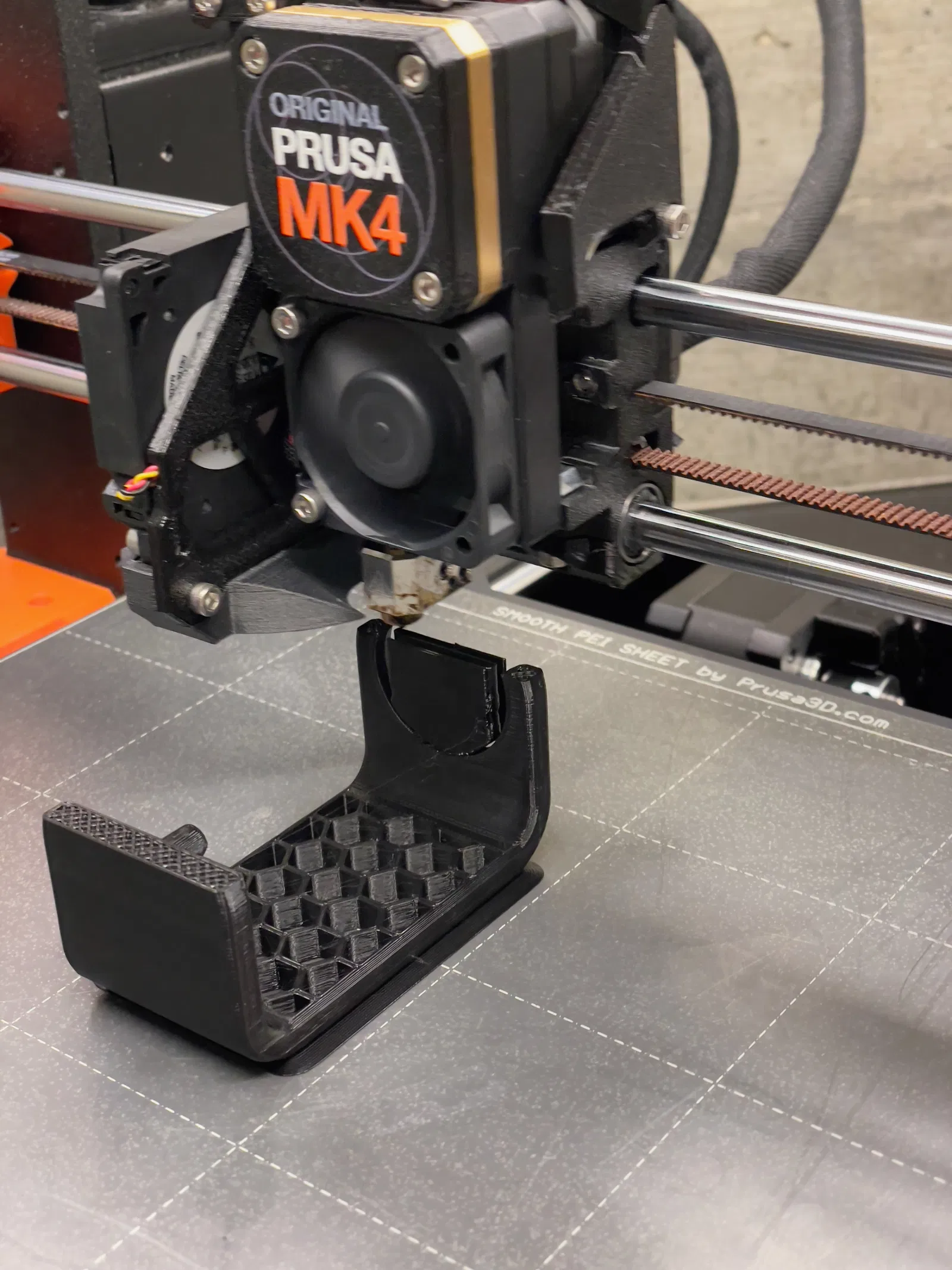 Phần đế chính thì in ngửa 2 cái chân lên trên để đỡ tốn support nhất có thể và đảm bảo chất lượng cho cái tổ ong.