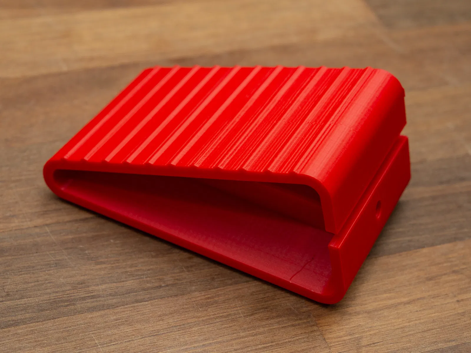 Bản in 3D này vừa với microswitch lớn hơn, sử dụng ốc ren đồng M3 và vít M3 để cố định. In bằng PLA cho cảm giác chắc chắn, đàn hồi tốt. Tiếng click rõ ràng. Có thể tùy chỉnh kích thước và loại công tắc qua OpenSCAD.