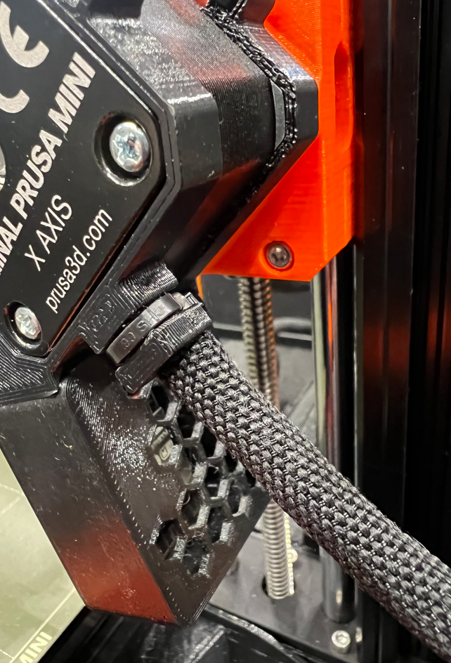 Vỏ đựng giúp gắn camera ESP32-CAM lên động cơ bước trục X của máy in 3D Prusa MINI. Có hai phiên bản vỏ, V1 và V2, với các yêu cầu về dây rút nhựa khác nhau. Cần cáp kết nối dài cho camera.