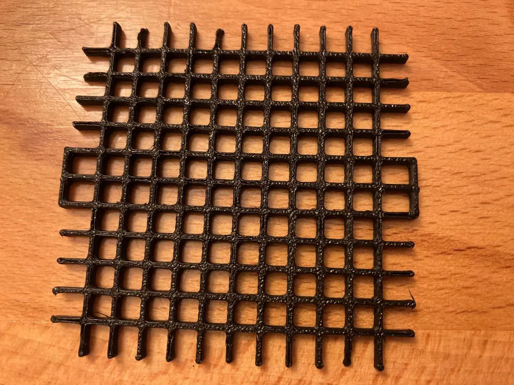 Cần in cái lưới cho bộ cắt rau củ Nicer Dicer. Lưu ý là chỉ in cái lưới thôi nha, không có cái miếng màu xanh lá đâu. Nhớ in chậm chậm thôi, tốc độ tối đa 30mm/s là được.