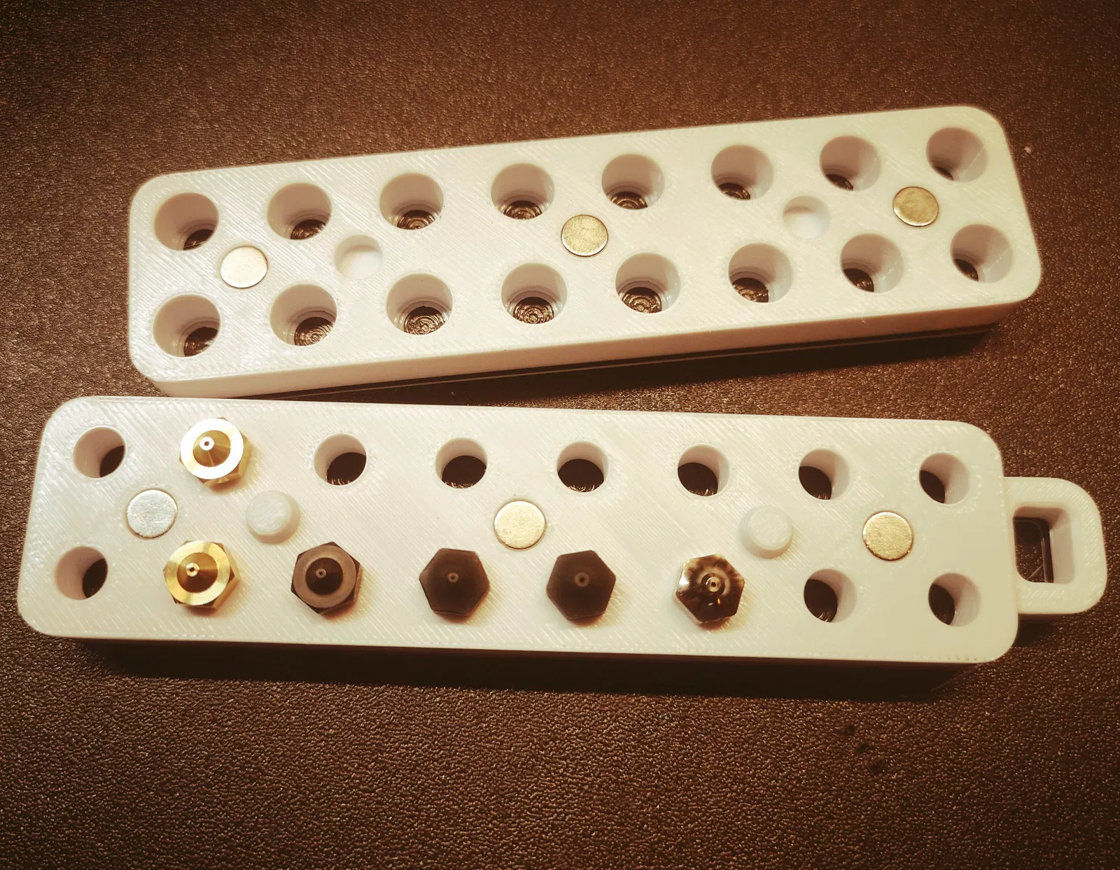 Hộp đựng được 16 đầu phun kiểu E3D V6, cũng vừa với đầu phun Phaetus Dragon. Nắp hộp được giữ cố định bằng nam châm 6x3mm. Phiên bản Rev.1 cập nhật logo trên nắp hộp.
