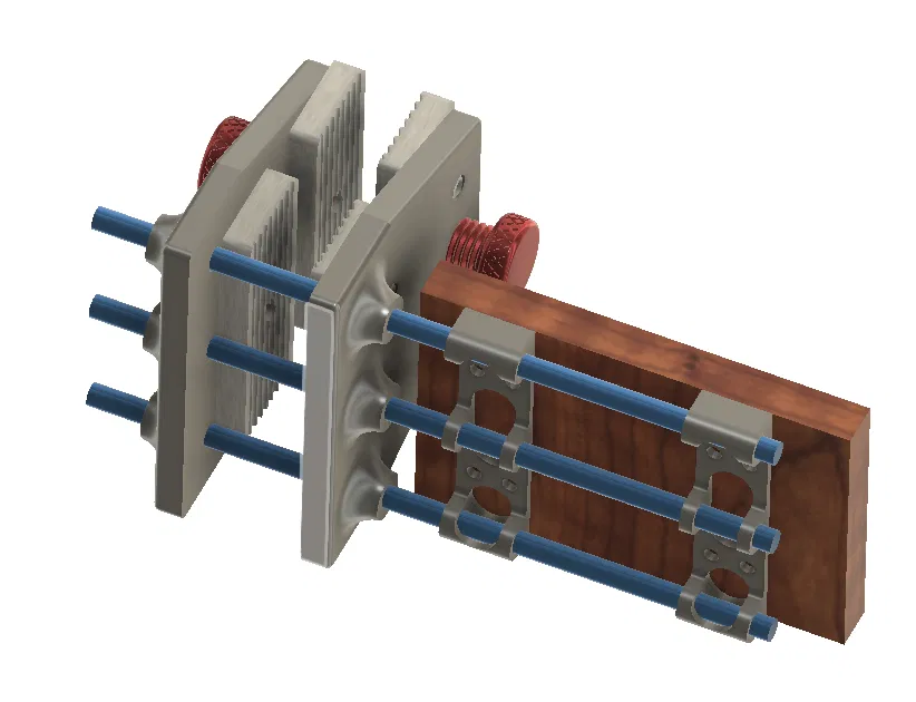 Sử dụng các vít núm vặn, cấu trúc có thể được kẹp vào bàn và độ nghiêng có thể được điều chỉnh.