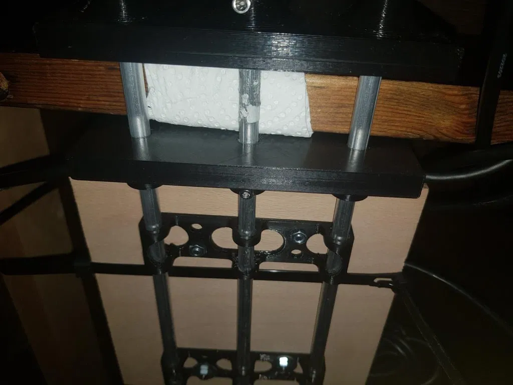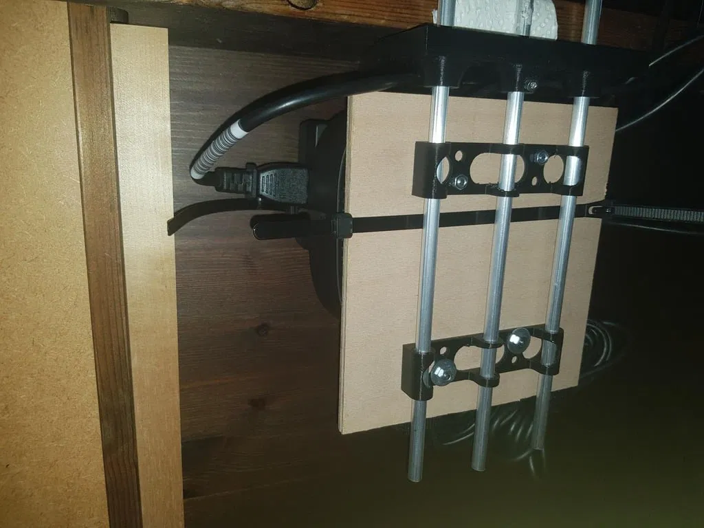 Giải pháp lưu trữ đa năng cho cáp, bộ chuyển đổi nguồn dưới gầm bàn mà không làm hỏng bề mặt. Lắp ráp dễ dàng với các thanh nhôm và tấm gỗ tùy chỉnh. Cố định chắc chắn bằng vít núm vặn, điều chỉnh độ nghiêng linh hoạt. Hoàn hảo cho không gian làm việc gọn gàng.