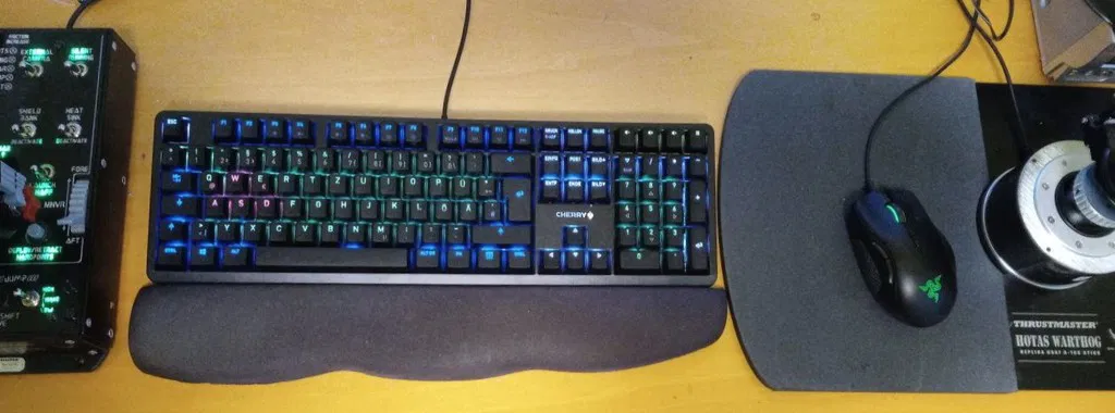 Tấm lót chuột này được sử dụng kết hợp với cần điều khiển Thrusmaster HOTAS WARTHOG như một phụ kiện để sử dụng chuột tiện lợi hơn. Tấm lót có thể gắn ở bên trái hoặc bên phải của cần điều khiển. Mặt dưới của tấm lót có các rãnh khoét để gắn nam châm Neodym và chân đế silicon. Nhờ đó, tấm lót được gắn chắc chắn vào cần điều khiển. Bề mặt tấm lót được chà nhám sau khi in để đạt độ mịn tối đa. Mình phát triển sản phẩm này đặc biệt để dùng cho game Elite Dangerous.