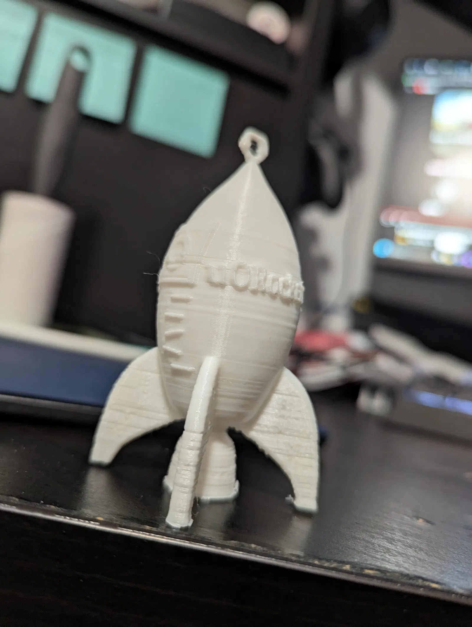 Trang trí cây thông Noel "uOttawa Rocketry Team Ornament" từ nhóm uORocketry! Một món quà giáng sinh độc đáo cho dân kỹ thuật mê tên lửa. Dễ in với PLA, không cần support.