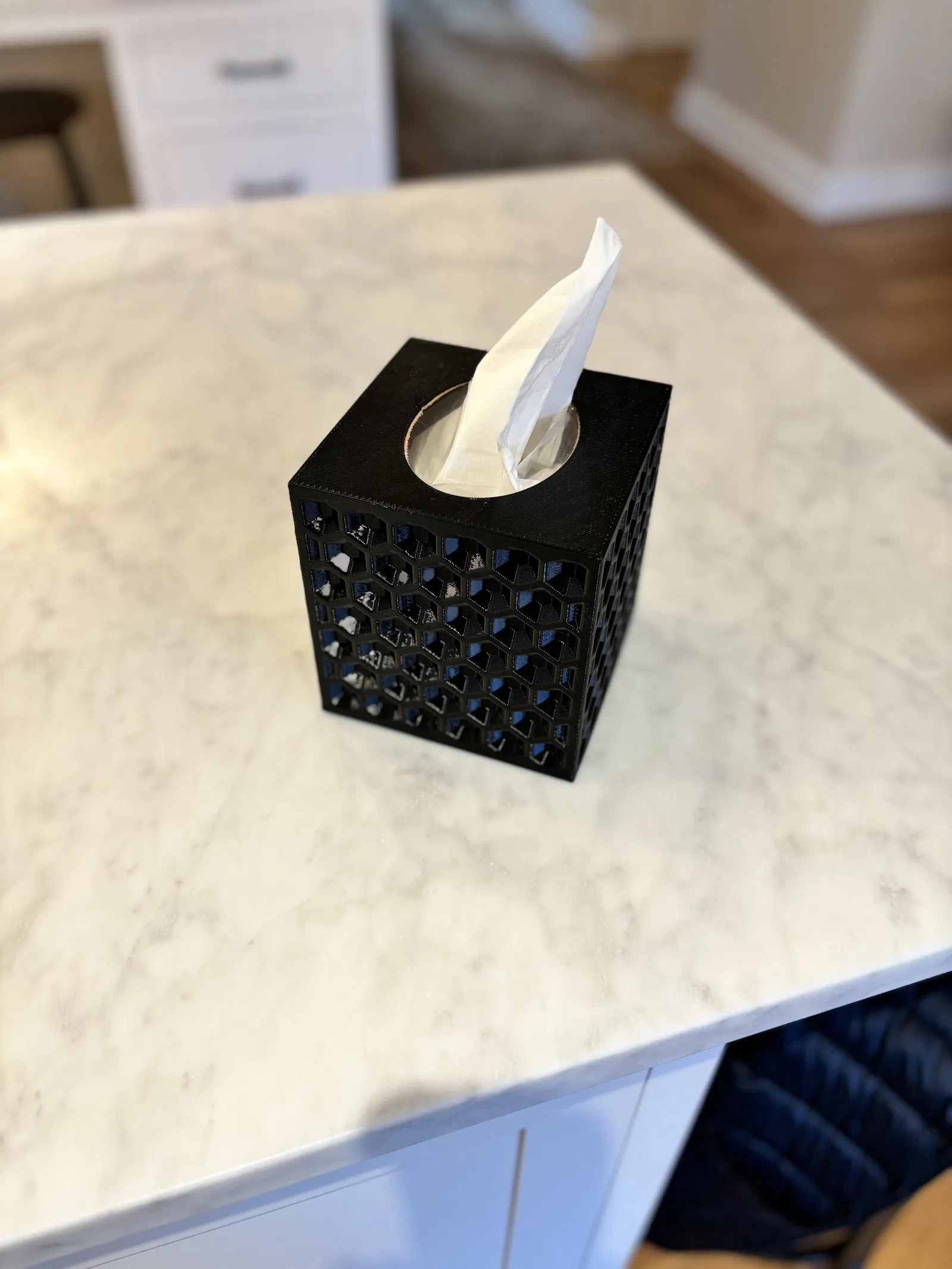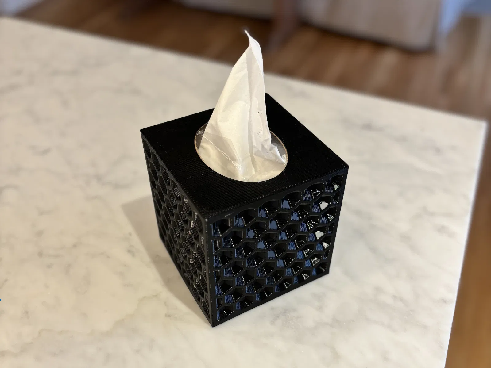 Đây là mẫu hộp đựng khăn giấy dành cho các loại hộp kích thước tiêu chuẩn như trong hình. Mô hình khá đơn giản, nhớ in ở chế độ "vase mode" để có kết quả tốt nhất nhé!