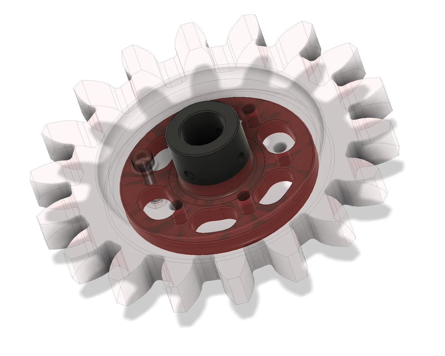 Mô-men xoắn định mức của động cơ là 12 Nm, gây ra ứng suất cao quanh rãnh then hoa. ABS với độ dày thành cao và mật độ điền đầy cao có thể bị hỏng sau vài giờ sử dụng. Sợi carbon gia cố nylon là vật liệu được ưa chuộng nếu mong đợi mô-men xoắn cao liên tục.