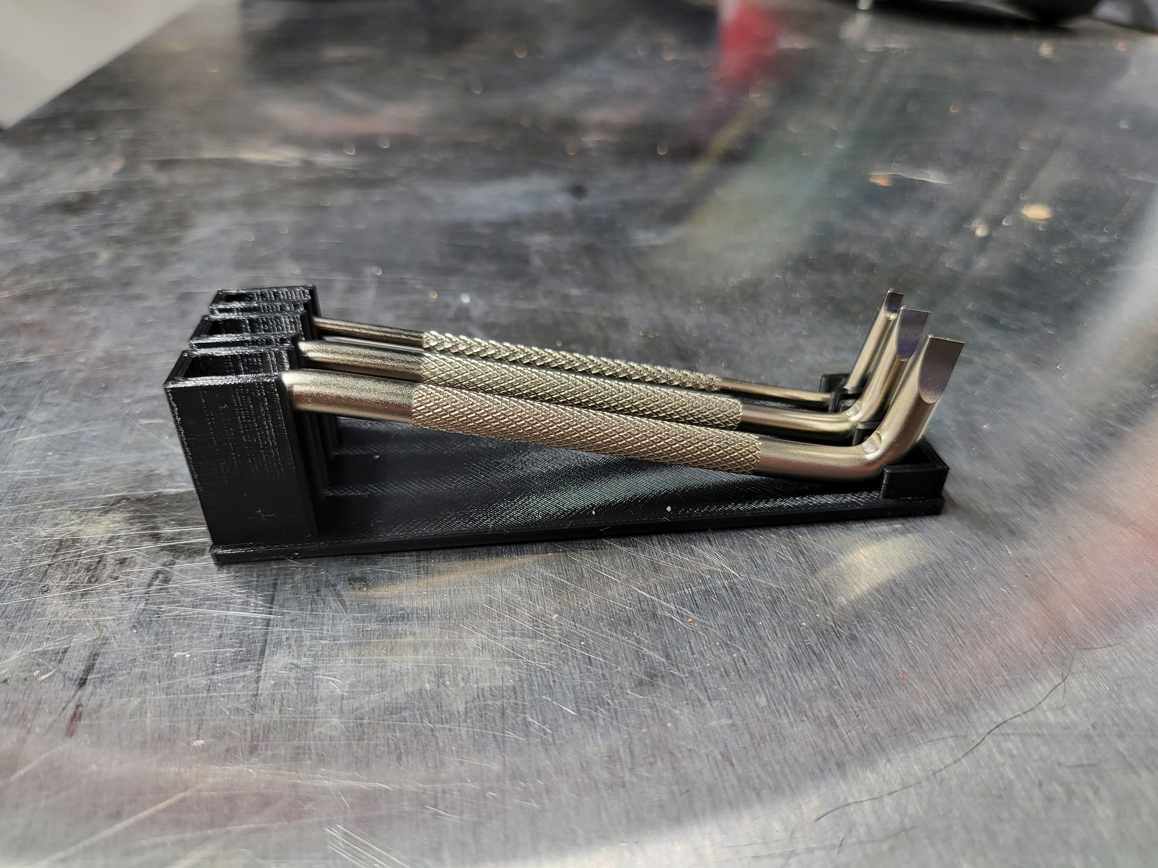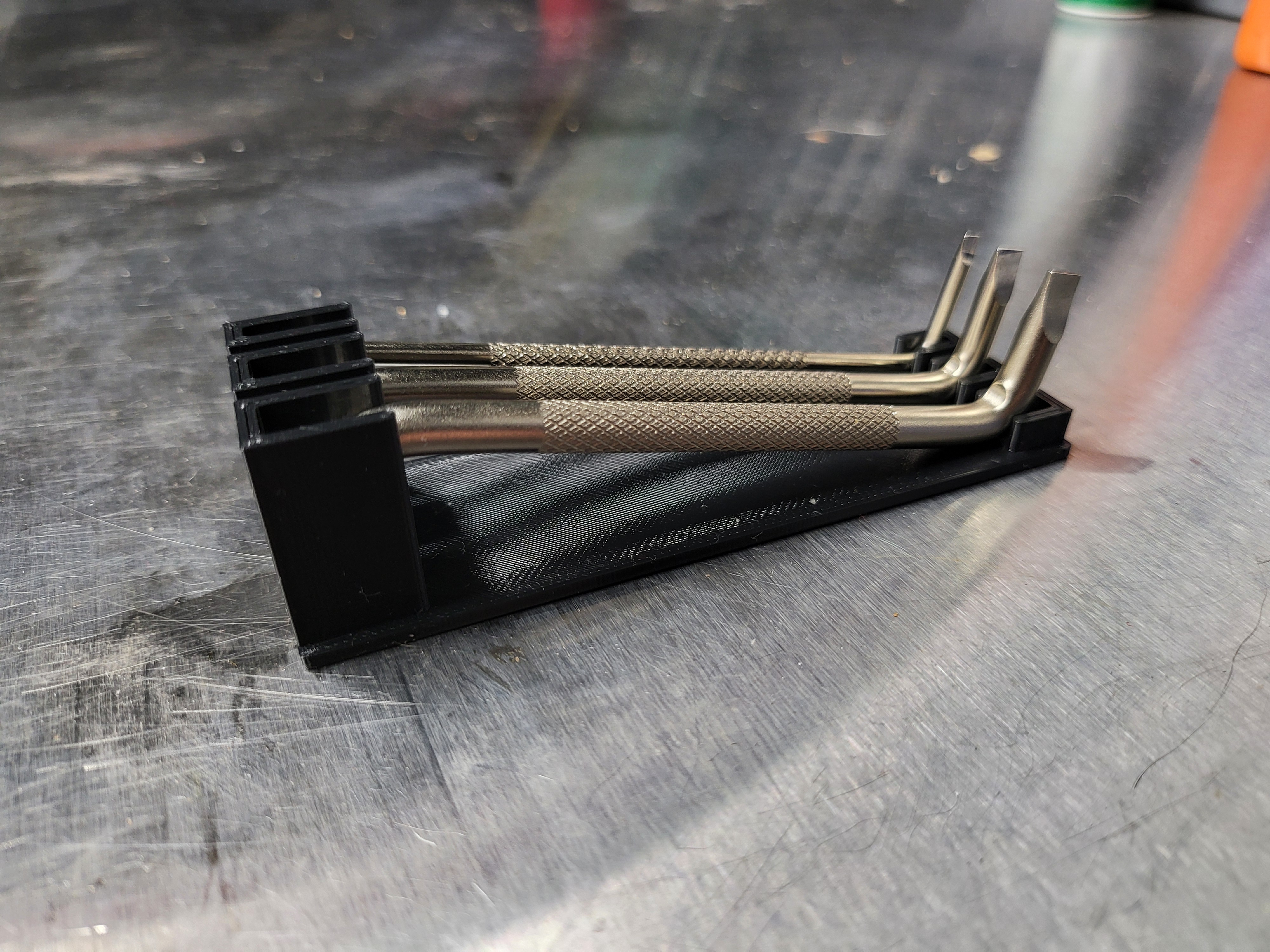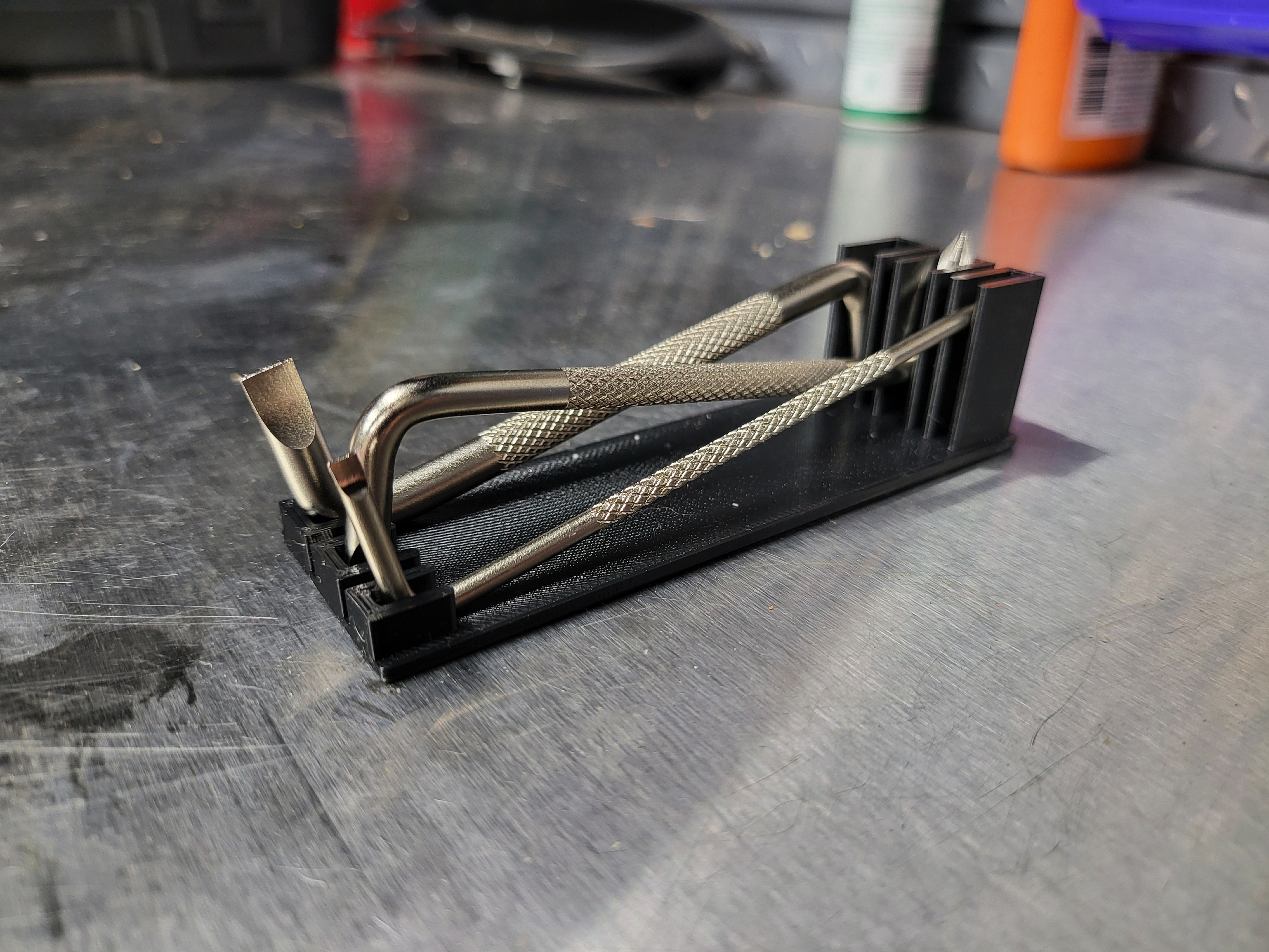 Đây là một cái đế giữ tua vít góc vuông / lệch, được thiết kế riêng cho bộ tua vít 3 món Craftsman thường được bán tại Lowe's. Cái đế này cho phép bạn đặt tua vít theo cả hai hướng để dễ dàng lấy ra hơn. Mặc dù nó được thiết kế đặc biệt cho bộ 3 món của Craftsman, nhưng nó có thể vừa với các bộ khác hoặc có thể được chỉnh sửa để phù hợp với các bộ khác.