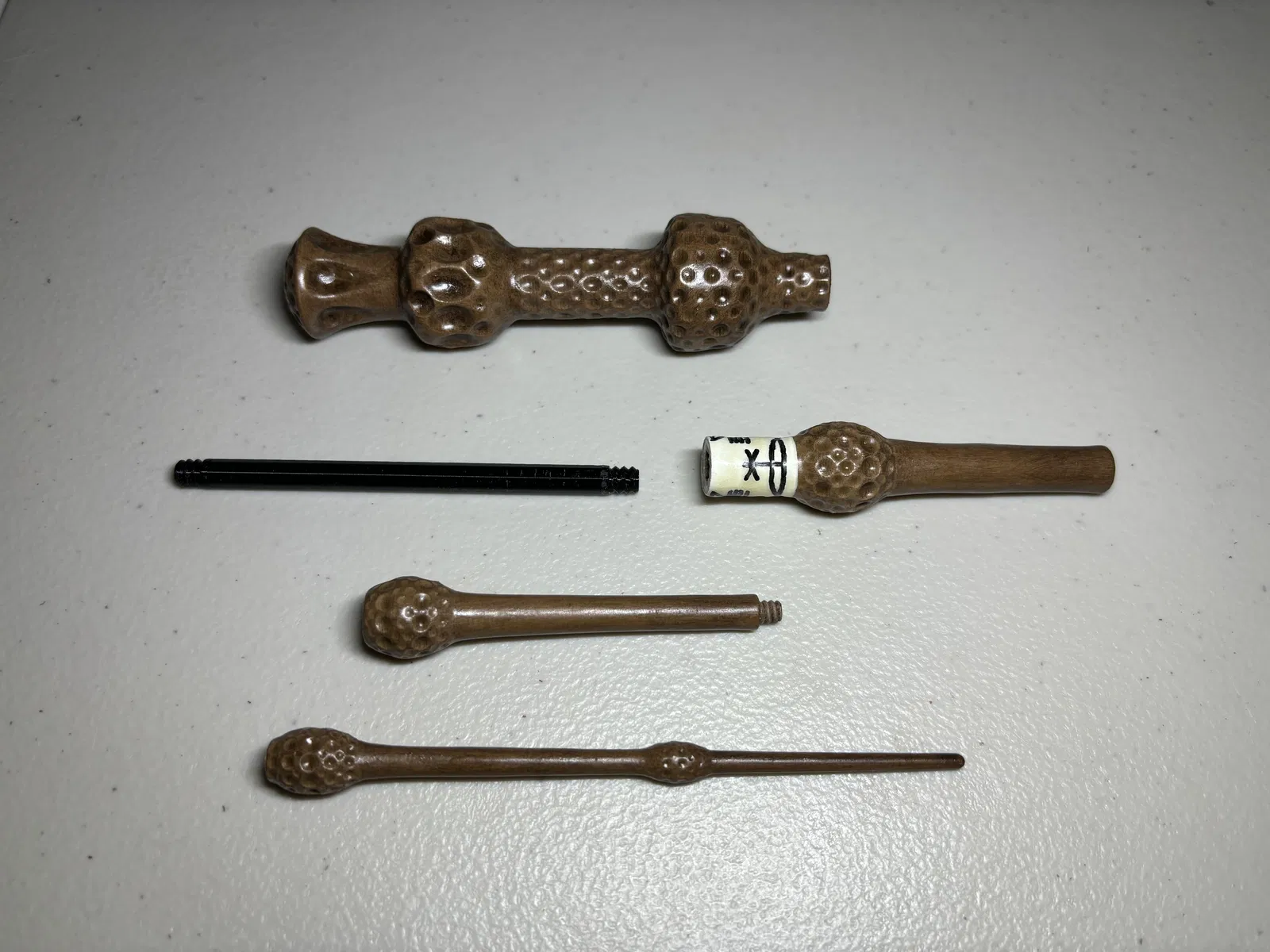 Mô hình Tiên Tri Cổ Đại (Elder Wand) từ Harry Potter, in thành 5 mảnh vặn lại với nhau. Có 2 phiên bản mảnh giữa: một có khắc rune, một trơn để tùy chỉnh. Vật liệu in gợi ý: Wood PLA cho thân đũa phép, Black PLA cho lõi.