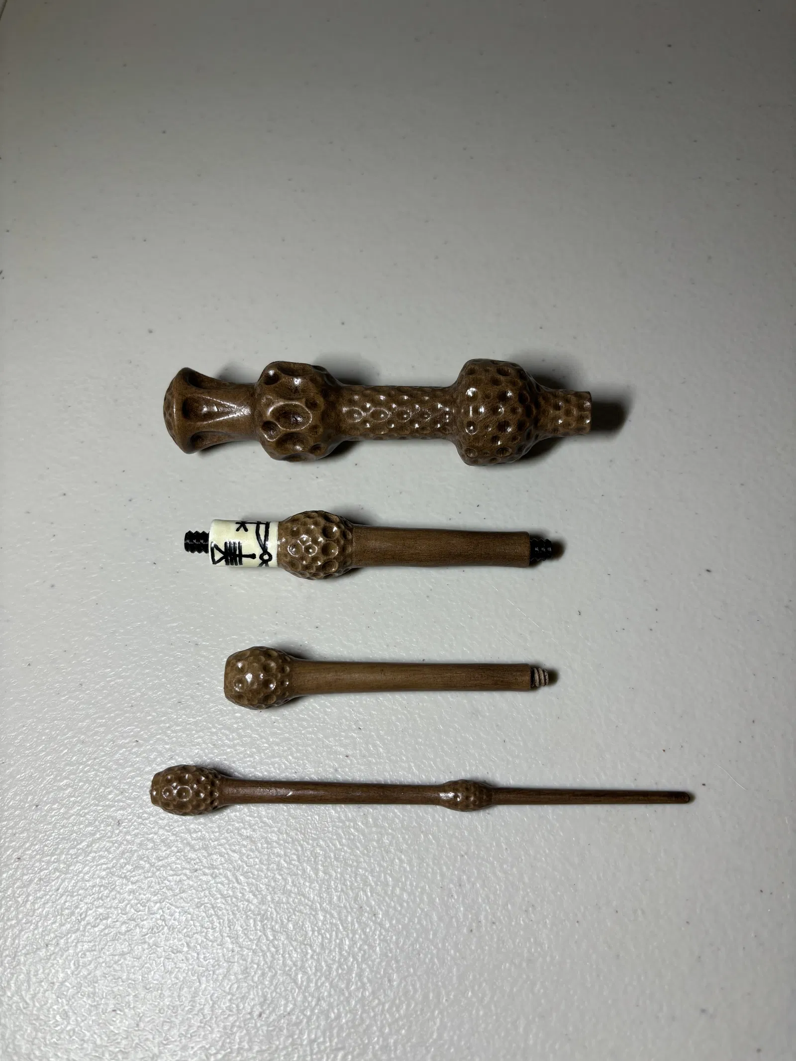 Cây đũa phép này được in thành 5 mảnh và vặn lại với nhau. Có 2 phiên bản cho mảnh ở giữa, một cái có khắc chữ rune và một cái trơn để tự khắc/tô màu. Tôi thực sự đã tạo ra mẫu này vào năm 2018, nhưng bây giờ mới tải lên.
