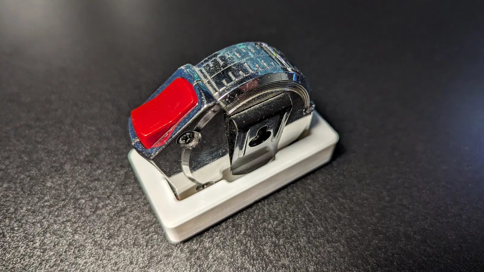 Hộp Gridfinity 1X2 dùng để đựng thước cuộn 10' của Engineers. Bạn có thể luồn thước vào hộp theo cả hai chiều.